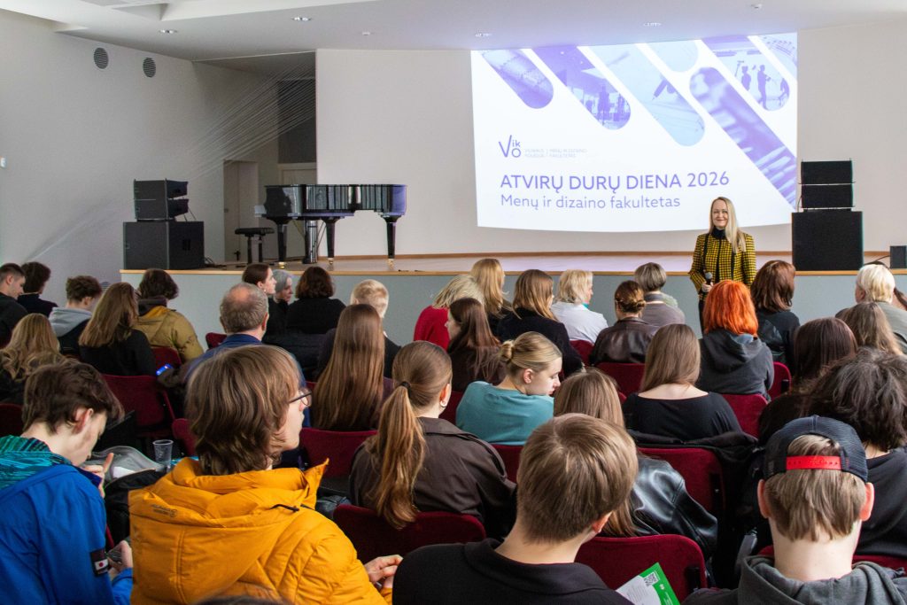 2026 metų Atvirų durų diena Vilniaus kolegijos Menų ir dizaino fakultete itin sėkminga. Sulaukta moksleivių iš Vilniaus Nacionalinės M. K. Čiurlionio mokyklos, Vilniaus Valdorfo Žaliosios mokyklos, „Juventos“ ir „Sostinės“ gimnazijų, taip pat iš Klaipėdos, Rokiškio, Pasvalio ir kitų Lietuvos miestų ugdymo įstaigų – iš viso apie 200 moksleivių. Atvykusius moksleivius ir jų mokytojus pasveikino Menų ir dizaino fakulteto dekanė dr. Birutė Žygaitienė, su studijų programomis ir kuratoriais supažindino Projektų ir kompetencijų plėtros skyriaus vedėja Laimutė Semėnienė.