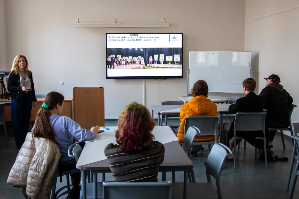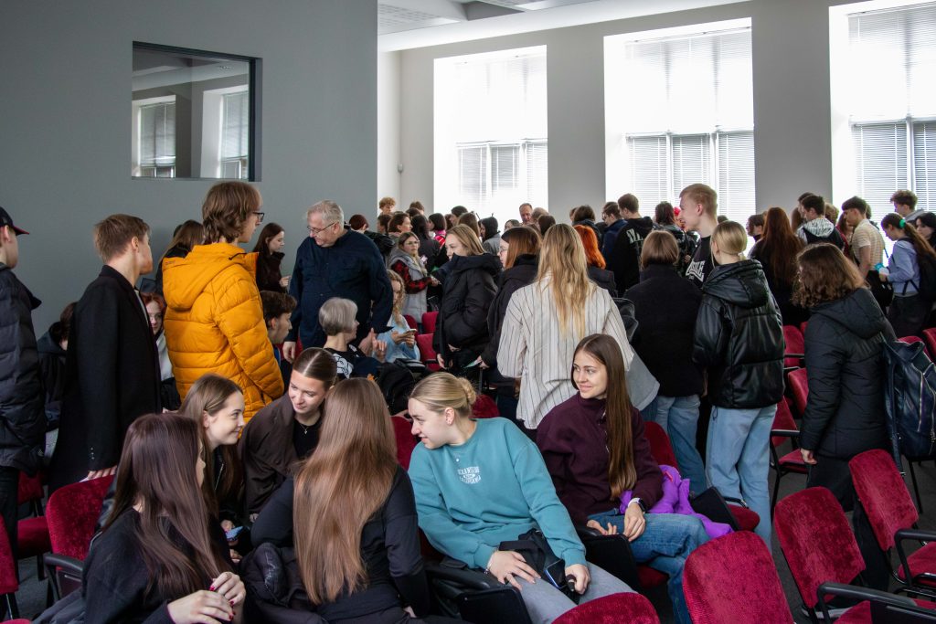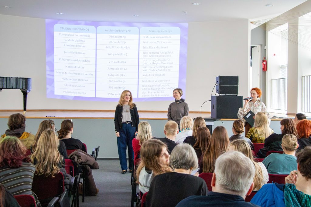 Renginio metu Mados dizaino katedros vedėja Gražina Skripkienė atsakė į mokiniams rūpimus klausimus apie studijų procesą, tarptautines galimybes bei „Erasmus+“ programą, suteikiančią progą įgyti vertingos patirties užsienyje.