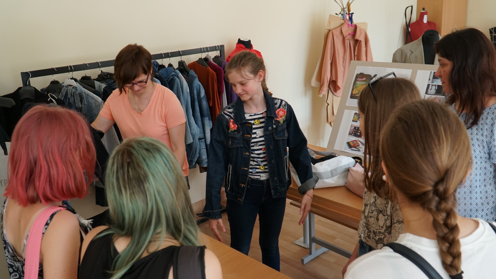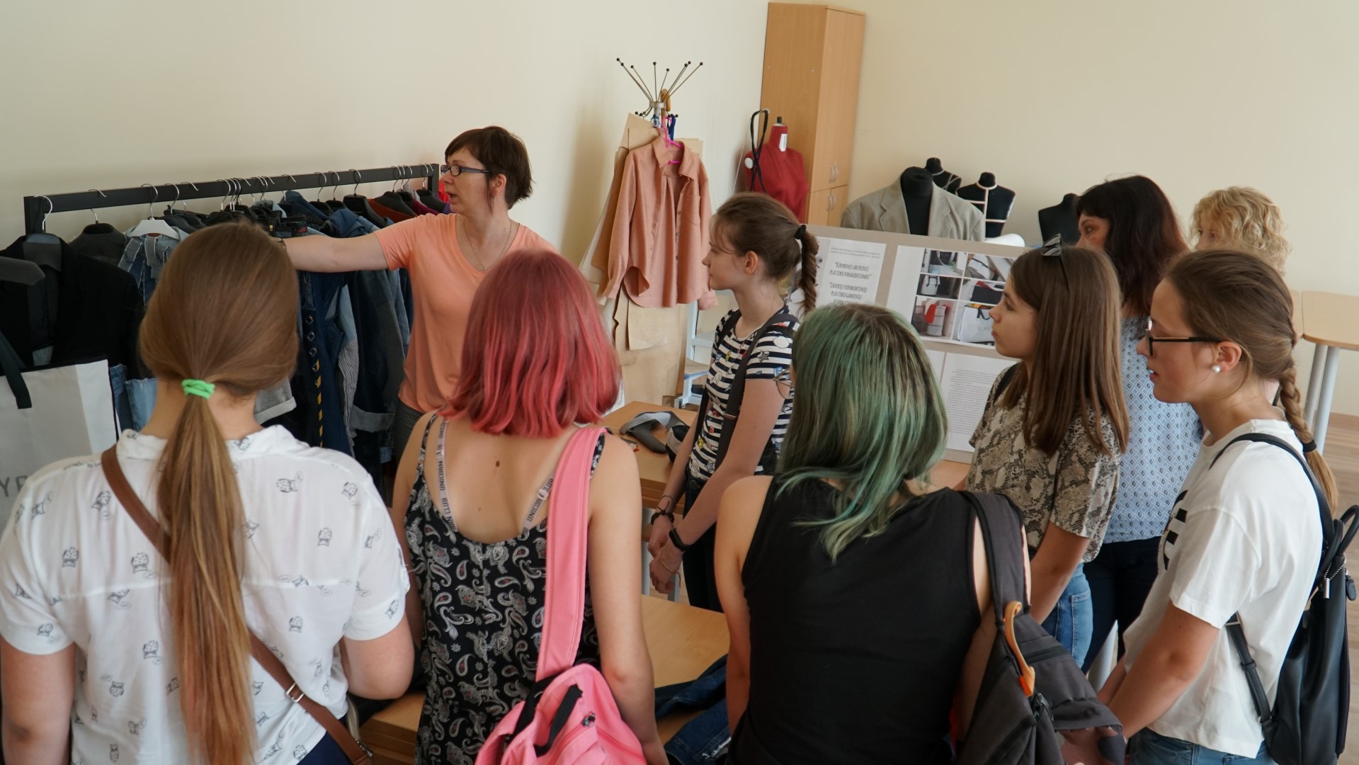 Labai džiugu, kad mokslo metų bėgyje fakultetas sulaukia nemažai besidominčių būsimomis studijomis. Tačiau ypatingai smagu, kad fakultetą aplanko ne tik abiturientai ir vyresnių klasių gimnazistai, bet ir žemesnių klasių moksleiviai, dar besimokantys progimnazijose. Birželio 7 dieną mus aplankė Baltupių progimnazijos 7 ir 8 klasių moksleiviai. Jiems fakultete buvo organizuota nepamokinės veiklos diena „Šok į tėvų klumpes”, kurios tikslas – susipažinti su įvairiomis profesijomis. Didžiąją laiko dalį moksleiviai praleido praktikų centre. Nuoširdžiai susidomėję ir pageidaujantys išbandyti patys, moksleiviai klausėsi praktikų centro veiklų pristatymo, susipažino su atliekančiomis praktiką Mados dizaino katedros studentėmis bei turėjo galimybę įvertinti ir pasakyti savo nuomonę apie studenčių sukurtus darbus. Po to, smalsiai apžiūrėję visą fakultetą, moksleiviai stebėjo net du baigiamuosius Muzikinio teatro ir Populiariosios muzikos studijų programų studentų egzaminus.