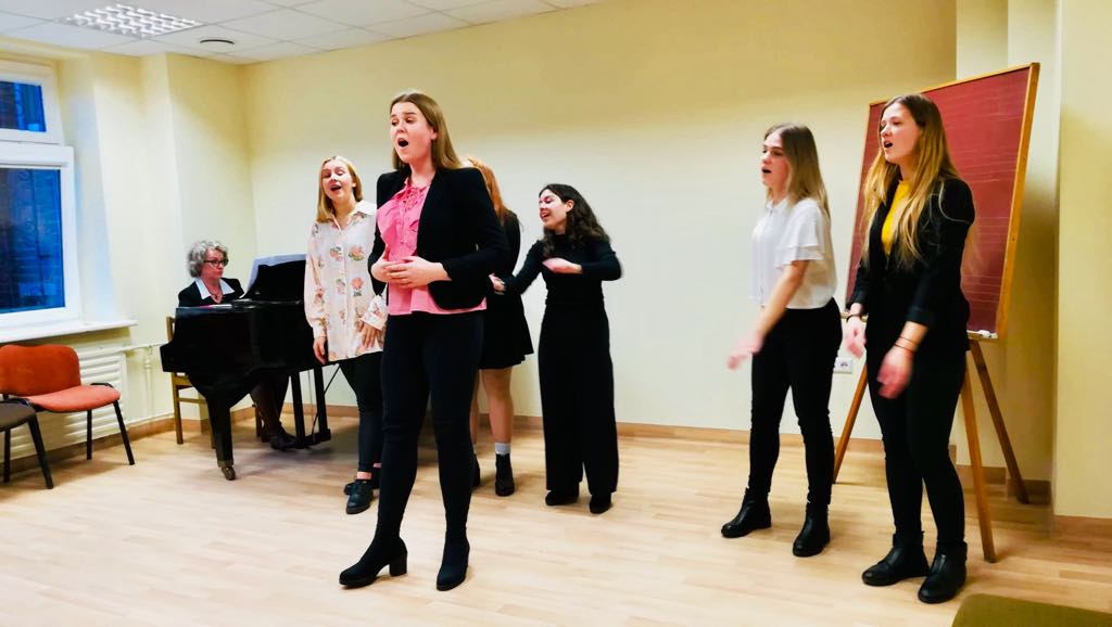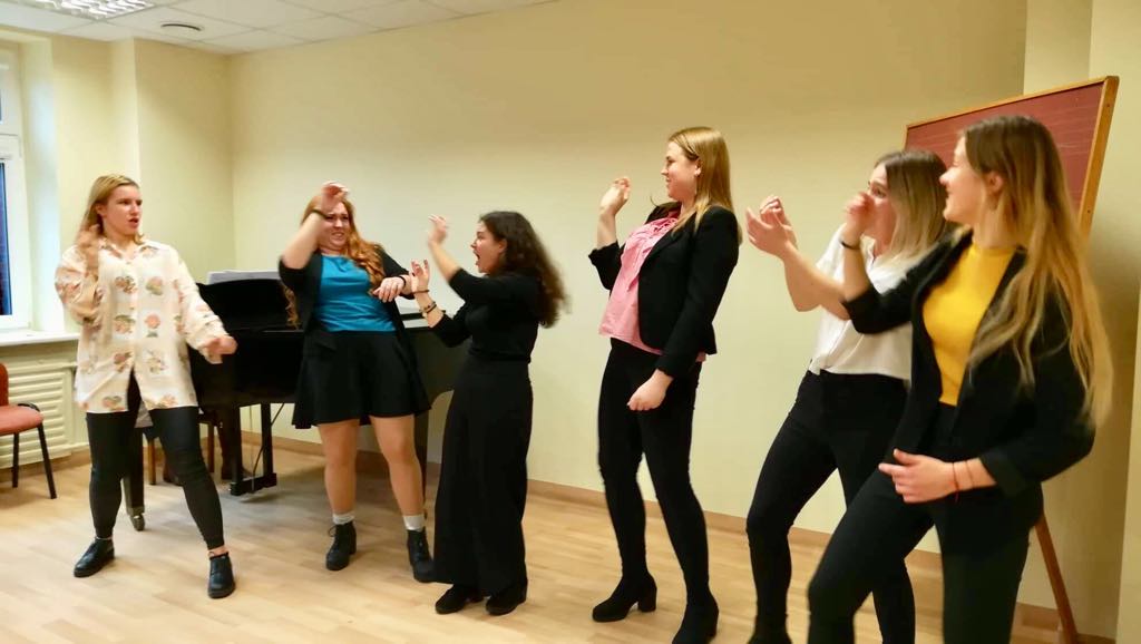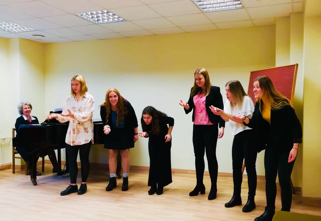 Lapkričio 18 d. Menų ir kūrybinių technologijų fakultete Scenos meno katedroje lankėsi Šakių raj. muzikos mokytojai. Svečiams buvo pravestas dviejų dalių seminaras – doc. Eglės Juozapaitienės autorinė edukacinė pamoka “Dainuojame žaisdami-žaidžiame dainuodami” ir lekt. Dalios Babilaitės – Abarės paskaita “Unikali ir įvairialypė Vilniaus kolegija. Muzikinio teatro studijų programa, galimybės, sklaida ir projektinė veikla, Lietuvos kultūriniame gyvenime”. Muzikos mokytojai entuziastingai įsitraukę į žaismingą dainavimo metodikos naujų galimybių pristatymą dalyvavo praktiniuose užsiėmimuose bei ypatingai susidomėjo Muzikinio teatro studijų programos unikalumo Lietuvos scenos menų kontekste pristatymu.