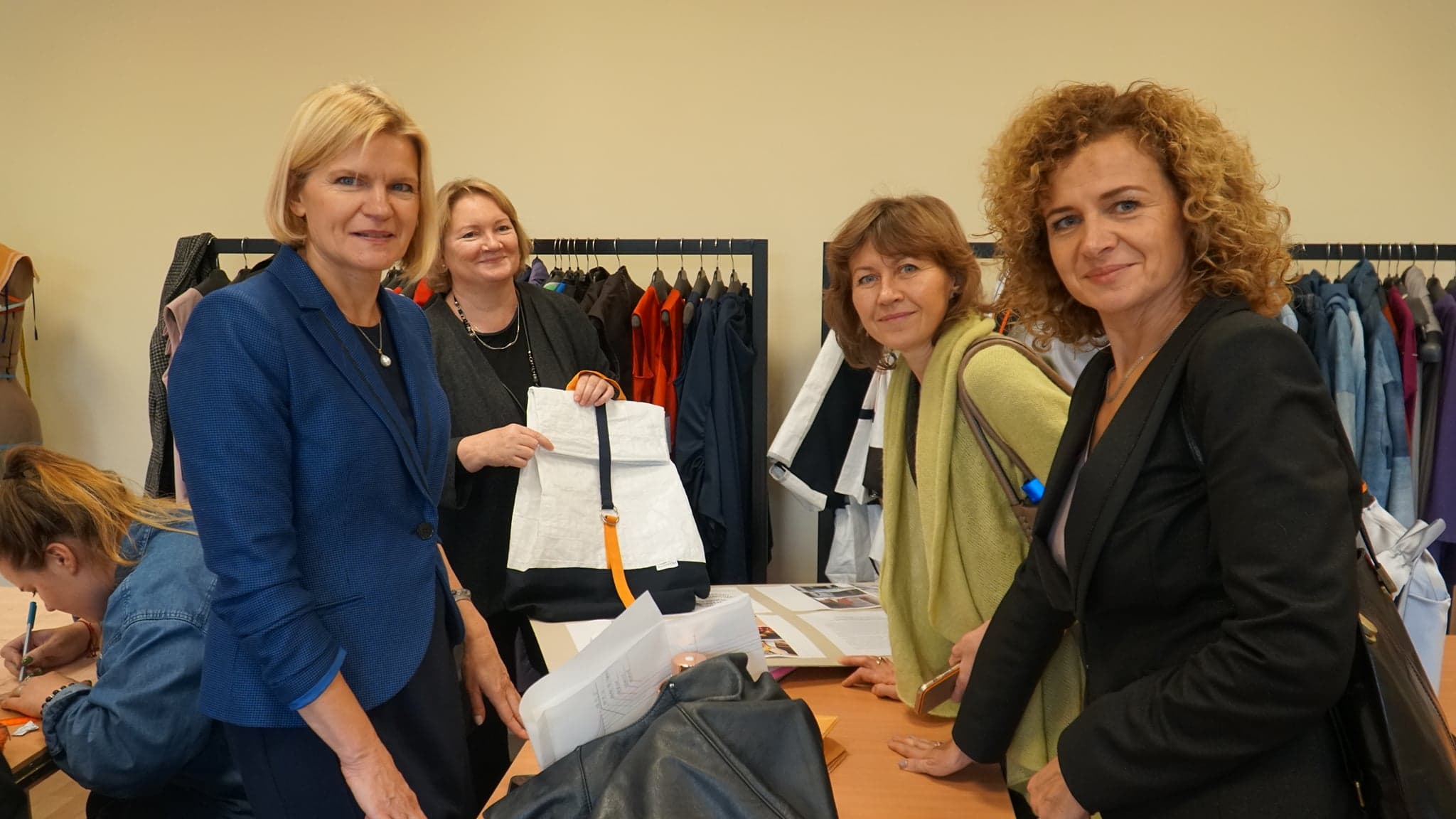 Lapkričio 13-14 dienomis Vilniaus kolegijos Menų ir kūrybinių technologijų fakultete lankėsi delegacija dėstytojų, atvykusių pagal Erasmus+ programą iš Rezeknės technologijų akademijos (Rezekne Academy of Technologies) Latvijoje. Trys dizaino programų lektorės: Diana Apele, Silvija Mezinska, Aina Strode vizito metu diskutavo su fakulteto Mados dizaino katedros dėstytojais apie mados dizaino ir mados technologijų programų iššūkius, problemas aukštosiose mokyklose, skaitė paskaitas Mados dizaino, Įvaizdžio dizaino bei Mados technologijų ir verslo studentams. Kūrybinė paskaitų tematika „Interdisciplinary approach for facilitation of creative“, „Problem-based learning approach in design study program“ sudomino studentus, ypač paskaita apie lazerio panaudojimo galimybes („Interdisciplinary research into the use of laser processing technologies in product design, experience of rezekne academy of technologies“) paskatino tiek mūsų dėstytojus, tiek studentus naujiems iššūkiams, idėjoms įgyvendinant įvairius kūrybinius projektus.