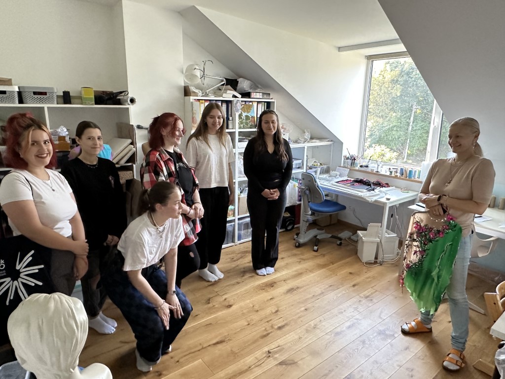 Mados dizaino studijų programos pirmo kurso studentės kartu su dėstytoja Jolita Raupeliene mokslo metus pradėjo vizitu pas sportinių šokių kostiumų meistrę, dizainerę Liną Antinienę, kuri mielai pasidalino savo darbo specifika ir subtilumais.