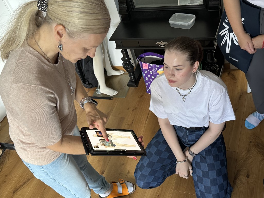 Studentės turėjo išskirtinę galimybę iš arti pažinti šokių kostiumų dizaino pasaulį bei gauti vertingų patarimų iš šios srities profesionalo.
