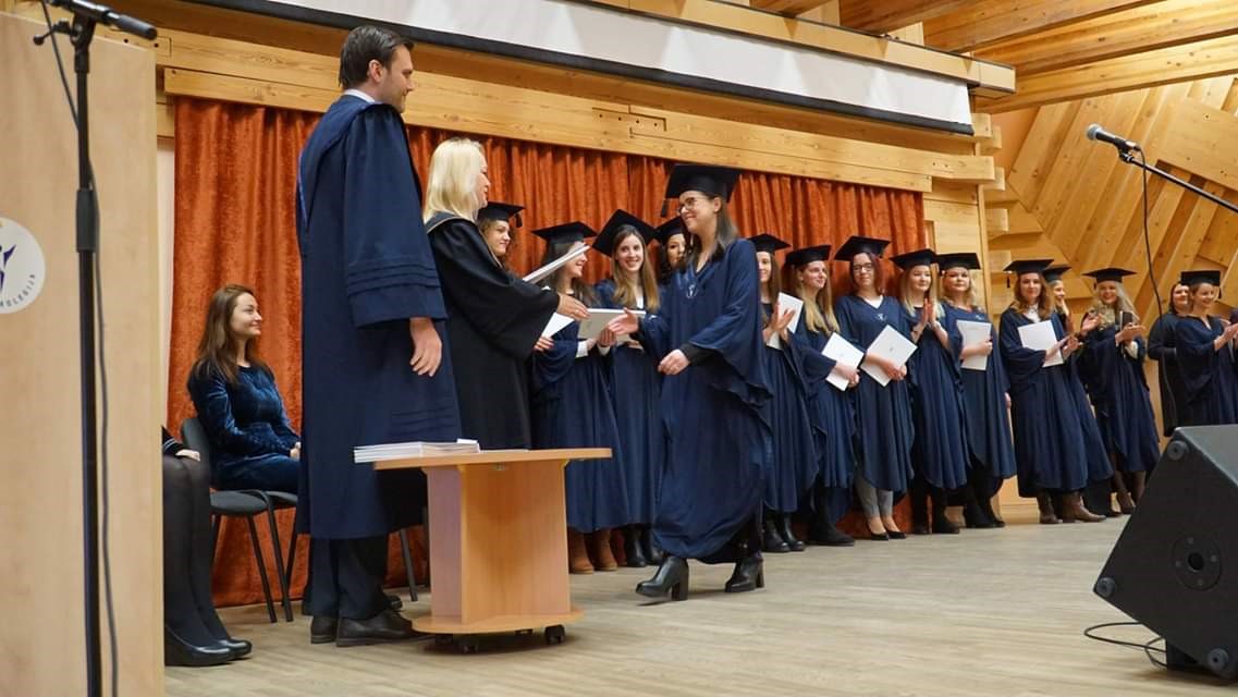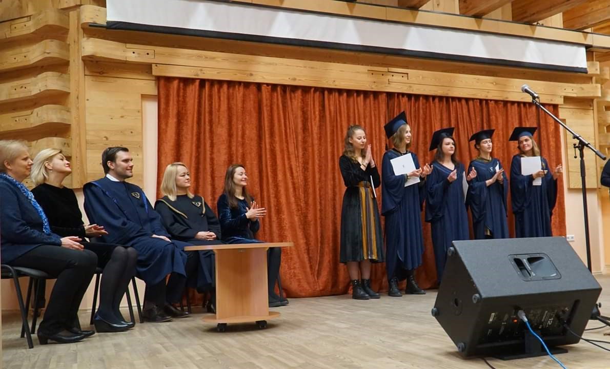 2019 m. vasario 7 d. Menų ir kūrybinių technologijų fakultete iškilmingai įteikti profesinio bakalauro diplomai Mados technologijų ir verslo bei Muzikinio teatro studijų programų absolventams.