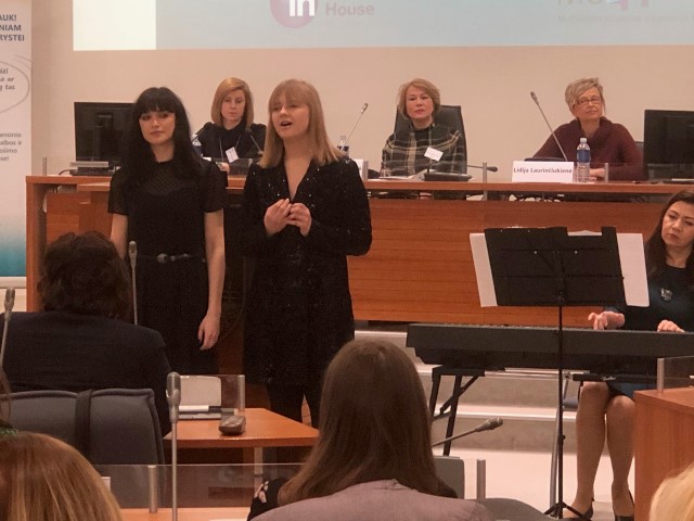Š. m. kovo 6 d. Vilniaus kolegijos Menų ir kūrybinių technologijų fakulteto Scenos meno katedros studentės savo muzikiniu pasveikinimu pradėjo konferenciją „Profesinė veikla ir savanorystė: iššūkiai ir galimybės, kai tau 54+“.