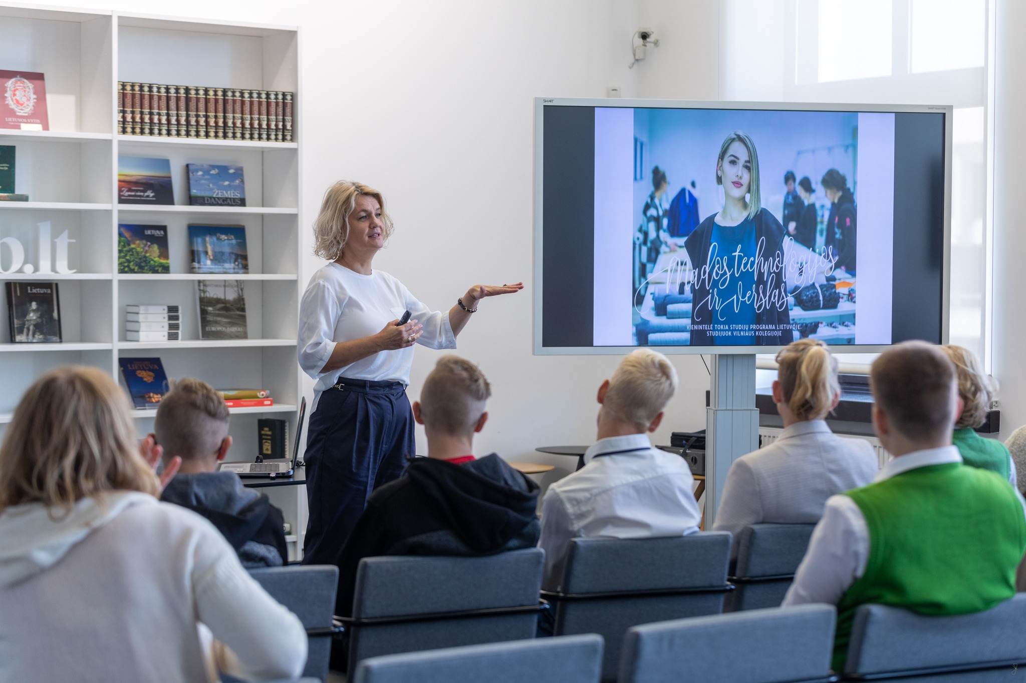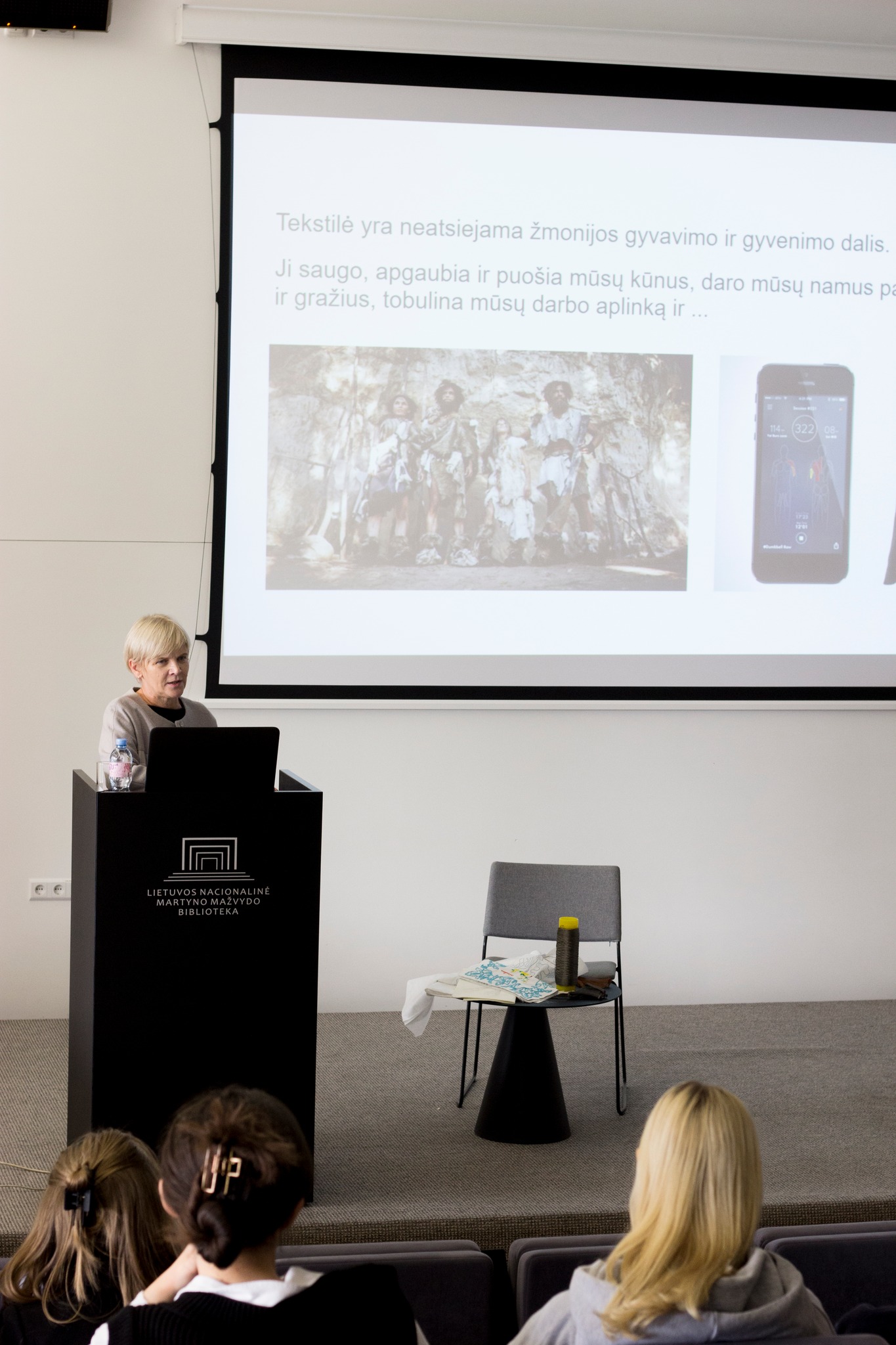 Rugsėjo 14 d. Lietuvos Nacionalinės Martyno Mažvydo bibliotekos Konferencijų salėje Mados dizaino katedros profesorė dr. Eugenija Strazdienė renginio dalyvius supažindino su tekstilės tvarumo keliu – nuo elementaraus medvilnės ir poliesterio pluoštelio iki beribio mados pasaulio. Dėstytoja aiškino, ar tai, kas natūralu, visada yra labai tvaru ir pabandė įdomiai atsakyti į klausimą: ar tiesa, kad dėvėsime drabužius, pagamintus iš maisto atliekų.