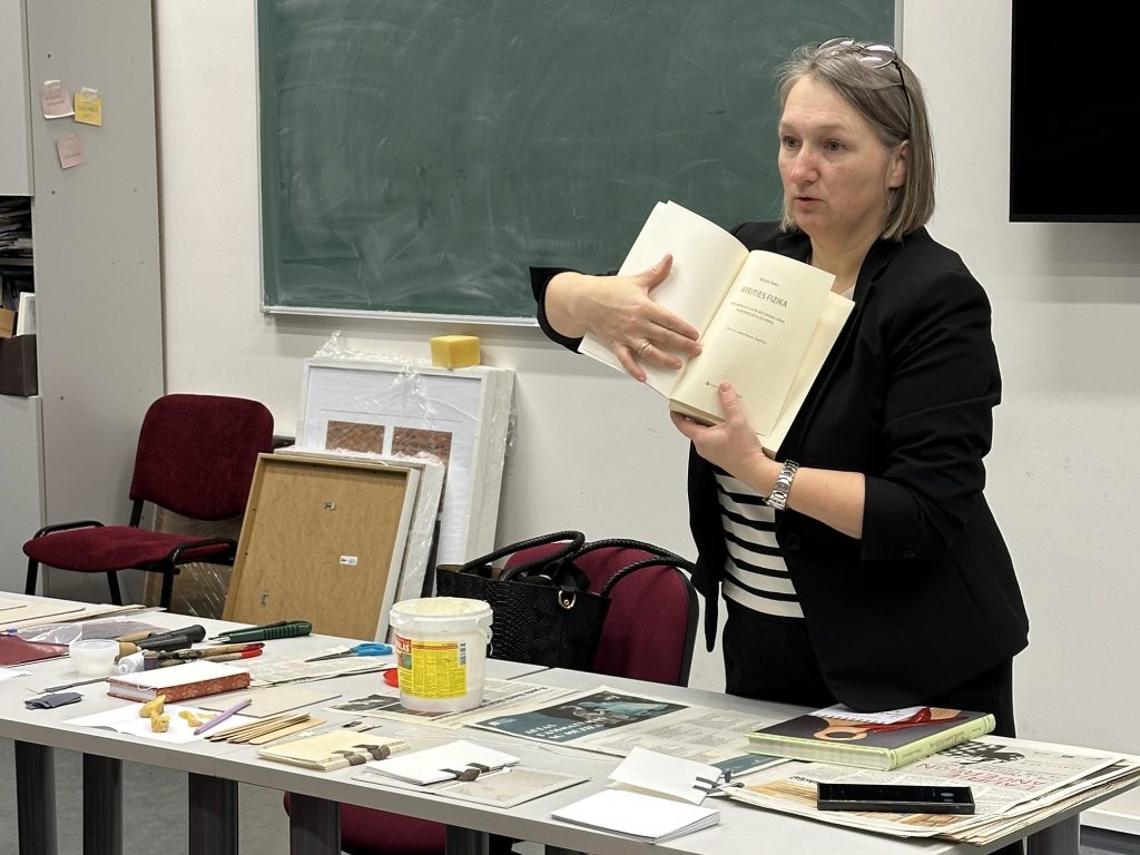 Dirbtuvių metu studentai susipažino su knygų įrišimo medžiagomis, technologijomis ir darbo eiga. Praktinių užsiėmimų metu jie sukūrė knygelę, įrištą kietu viršeliu.