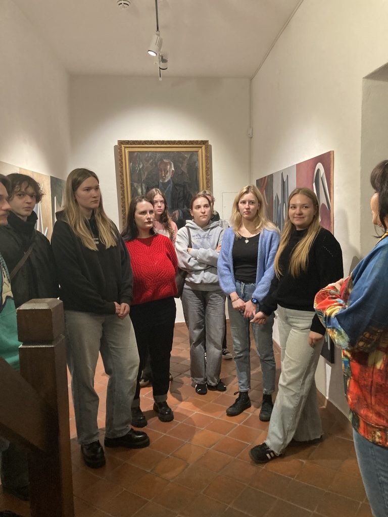 Spalio 16 d. studentai aplankė išeivijos menininko, vieno žymiausių optinio meno atstovų, Kazio Varnelio memorialinį namą-muziejų. Pagrindinis paskaitos tikslas buvo patyrinėti unikalios parodos „Laukžemės madona“ svarbiausią eksponatą – menotyrininkės Marijos Matušakaitės atrastą gotikinę skulptūrą, taip pat kitus su Laukžemės bažnyčios altoriumi susijusius eksponatus. Tačiau žiūrovus sudomino ir didžiaformatė Kazio Varnelio optinė tapyba, jos poveikis lankytojams, pasakojimai apie menininko asmenybę bei Lietuvai reikšmingą meno kūrinių kolekciją (ekspozicijoje galima pamatyti Albrechto Diurerio ir Francisco Goyos originalus).