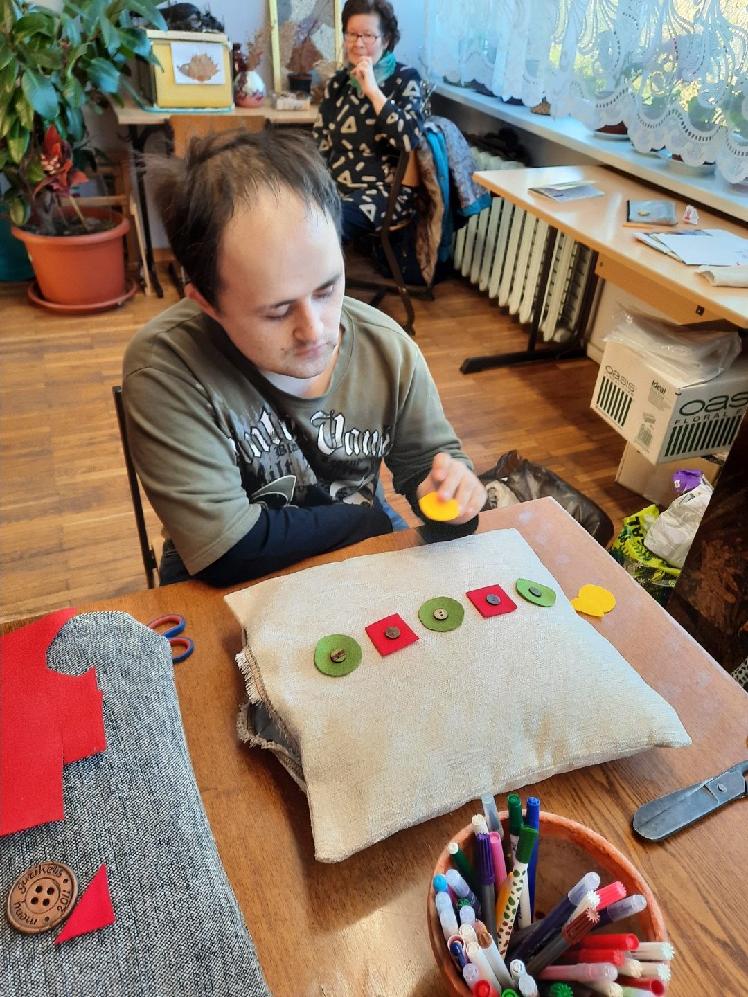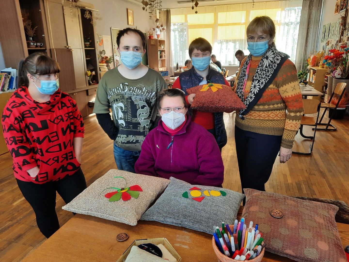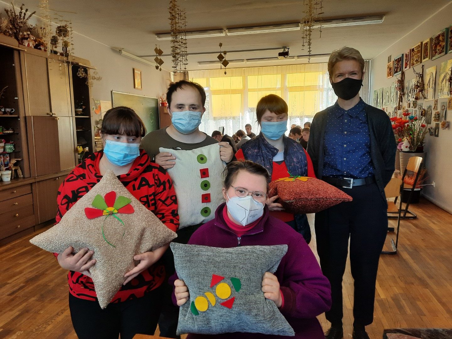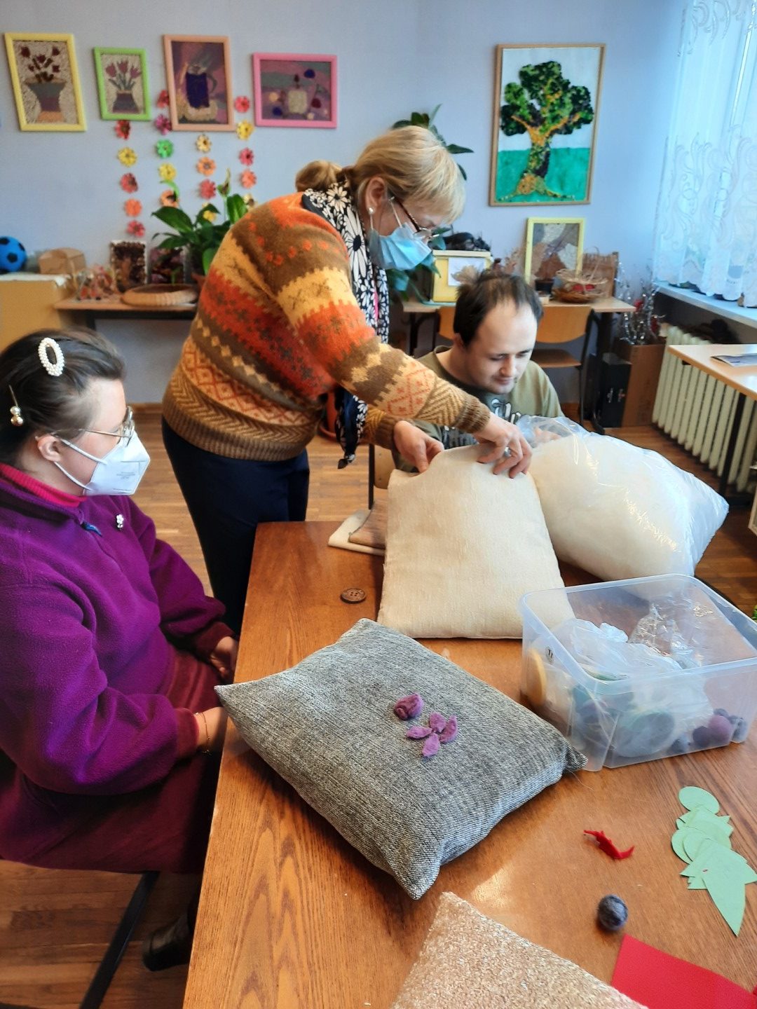 Šių metų spalio 20 d., tęsiant bendradarbiavimo tradiciją, Menų ir kūrybinių technologijų fakulteto Mados dizaino katedros dėstytojos Violeta Bytautaitė ir Gražina Skripkienė nuvyko į Vilniaus Verkių mokyklą-daugiafunkcį centrą, kuriame jų laukė intelekto sutrikimų negalią turintys mieli mokiniai ir jų auklėtoja Vida Abromaitienė. Šįkart kūrybinių dirbtuvių metu Kolegijos lektorės kartu su mokiniais gamino tekstilines pagalvėles, jas dekoravo veltinio audinio skiautelėmis, sagomis, juostelėmis ir kt. Pasiūtais gaminiais vaikai džiaugėsi ir kuo greičiau norėjo nudžiuginti savo artimuosius. Kartu praleistas laikas padovanojo neužmirštamų akimirkų centro auklėtiniams, o ypač teigiamų emocijų, gerumo atvykusiems svečiams iš Vilniaus kolegijos. Tikimės, jog šios gražios kūrybinių dirbtuvių-seminarų iniciatyvos tęsis ir kitąmet.