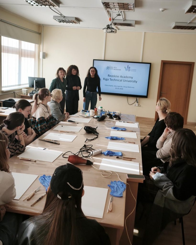 2026 m. kovo 5 d. Mados dizaino katedroje lankėsi dėstytojos Silvija Mežinska, Diāna Apele ir Gita Līpenīte iš Rėzeknės technologijų akademijos (Latvija). Vizitas vyko Tarptautinės dėstymo savaitės 2026 metu, kuri kovo 2–6 dienomis buvo organizuojama Menų ir dizaino fakultete.