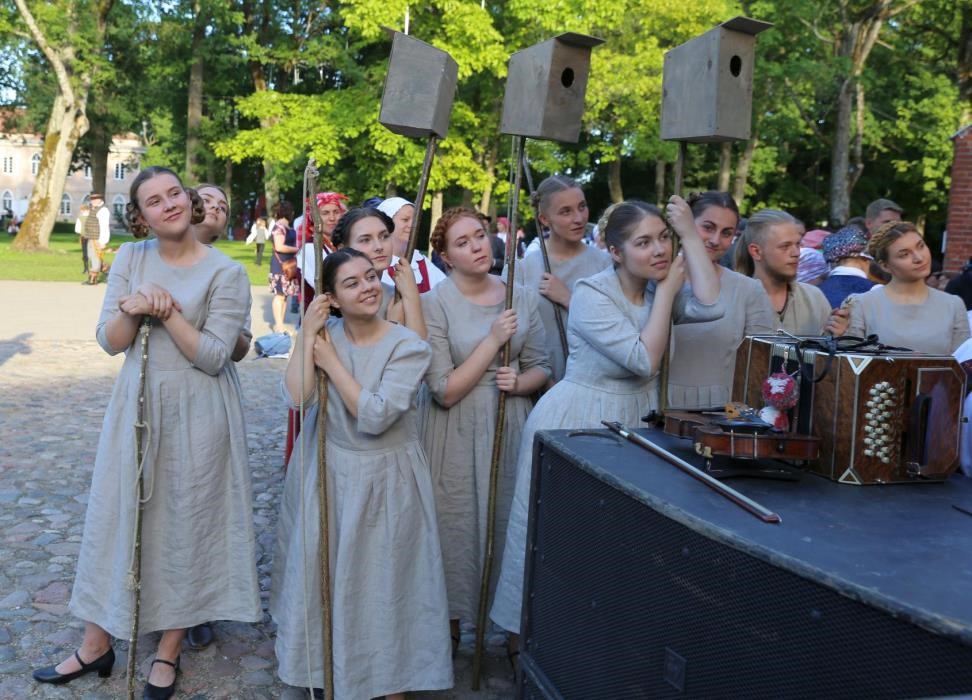 Vilniaus kolegijos Menų ir kūrybinių technologijų fakulteto Muzikinio teatro studijų programos studentai puikiai įsiliejo ir tapo jungiamąja dalimi išankstiname Dainų šventės renginyje „Didžių žmonių žemė“ Raudondvario parke.