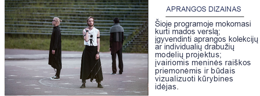 Išsirink artimiausią tau specialybę – vieną iš aštuonių. Tai puiki galimybė gilinti turimas žinias bei įgyti daugiau įgūdžių, tačiau jei ir neturi jokios patirties tave dominančioje srityje, bet degi noru mokytis, tuomet Vilniaus Kolegija yra puiki erdvė augti, kurti ir tobulėti.  Menų ir kūrybinių technologijų fakultete galite rinktis iš šių siūlomų studijų programų: