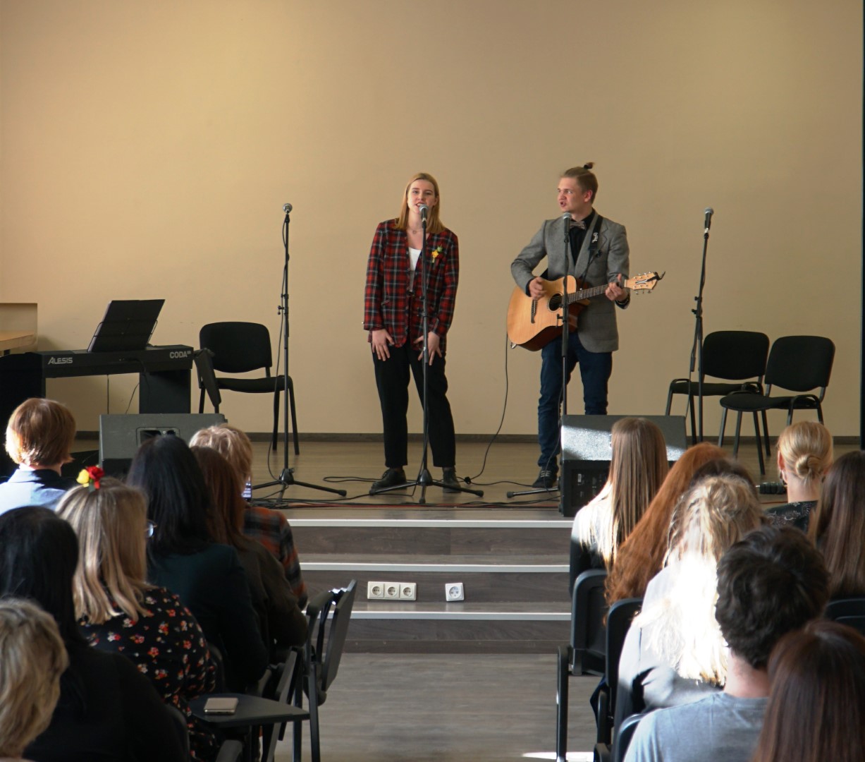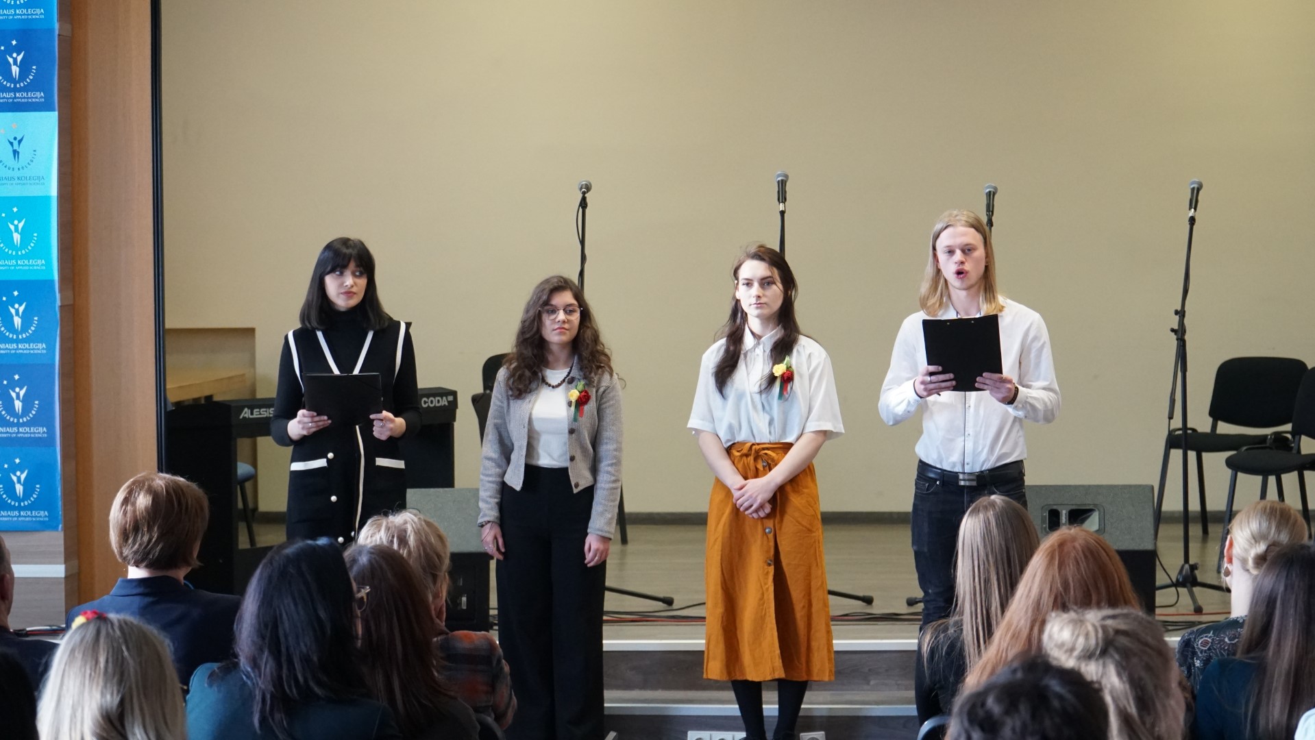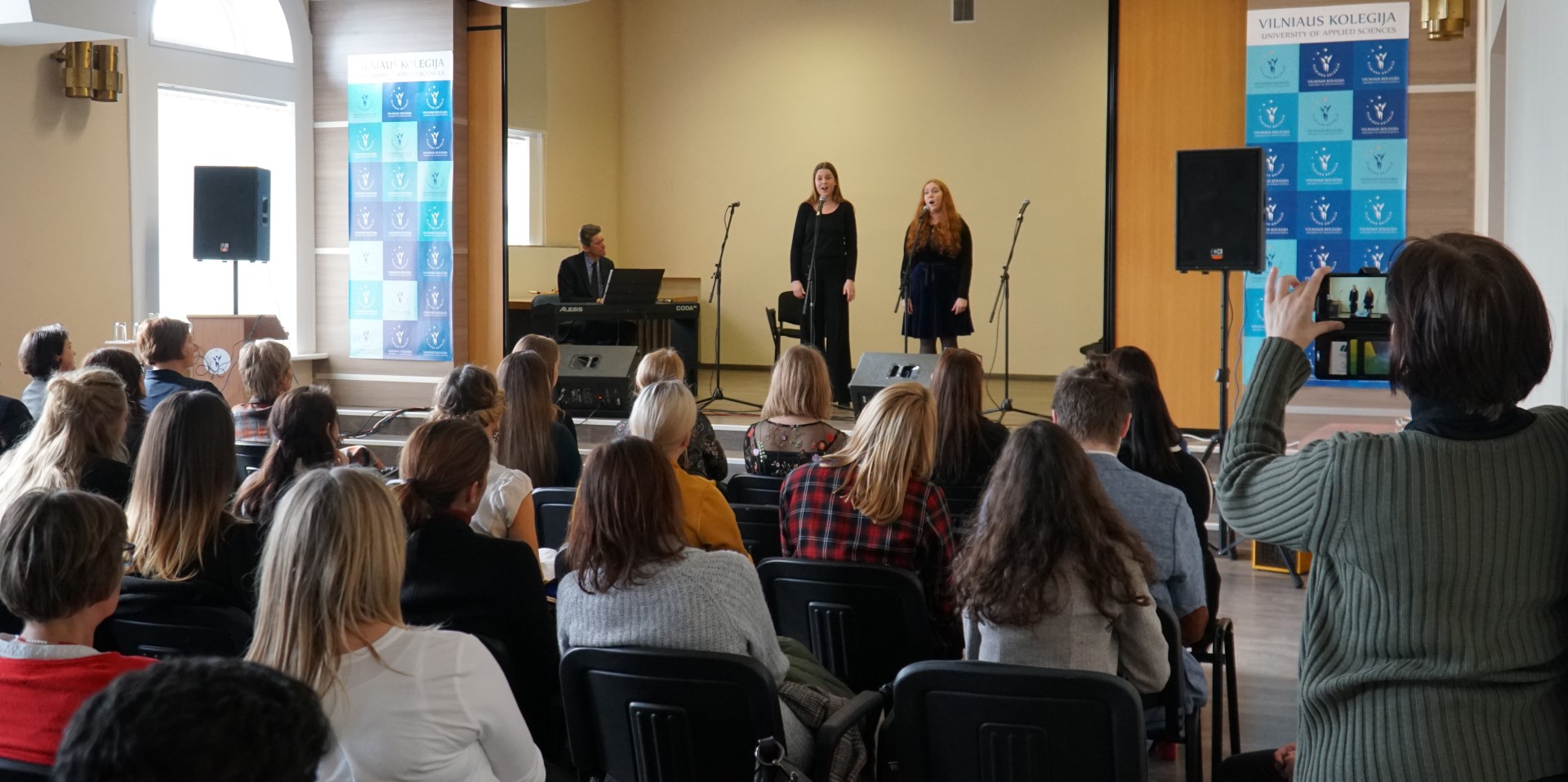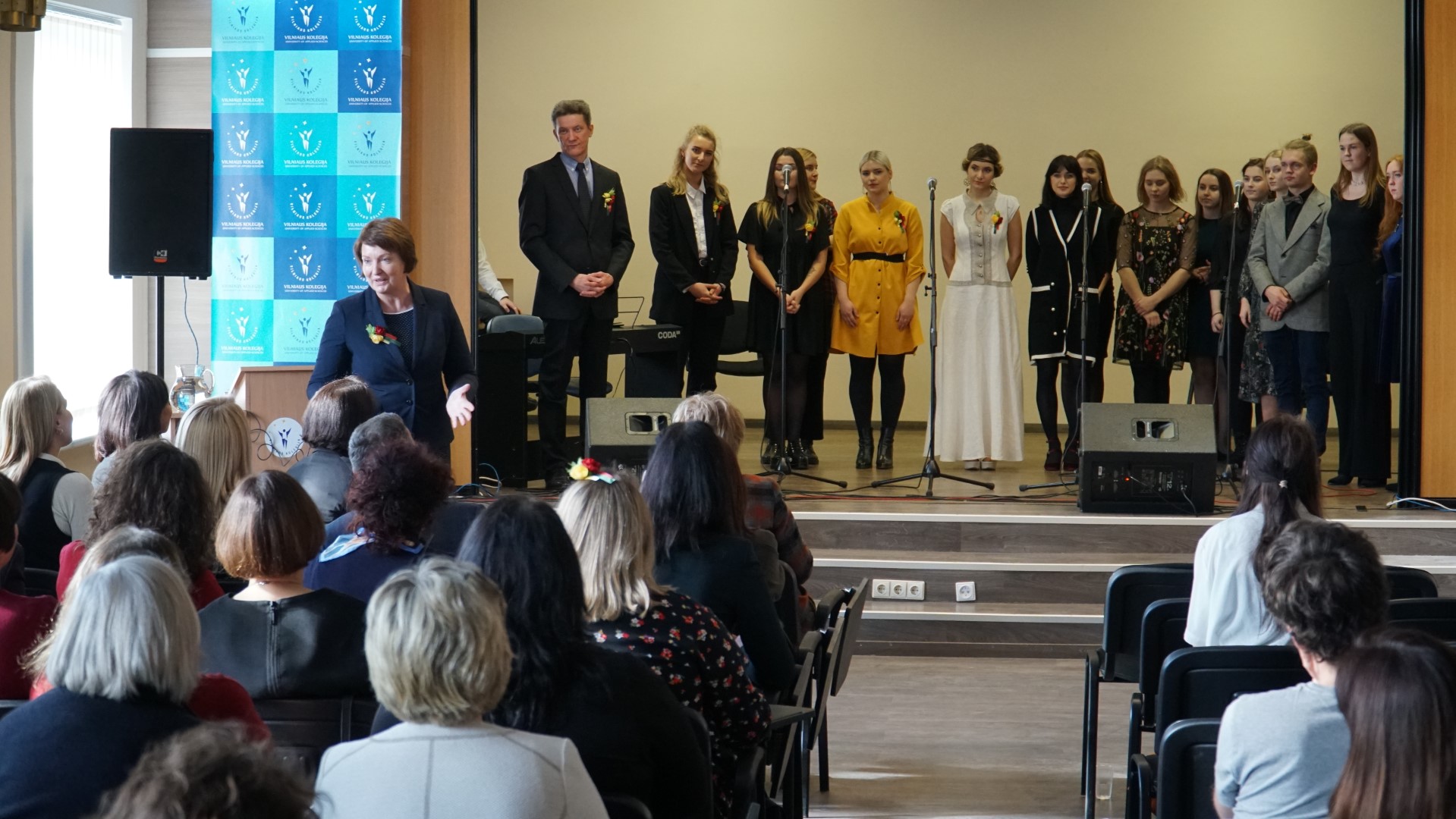 Š. m. kovo 8 d. Vilniaus kolegijoje paminėjome net tris progas, skambant gražiausioms patriotinėms dainoms: Moters dieną, Tarptautinės savaitės baigiamąjį renginį bei Lietuvos Valstybės atkūrimo dieną. Šventiškai nuteikė Menų ir kūrybinių technologijų fakulteto studentų skaitomos eilės bei atliekamos dainos.