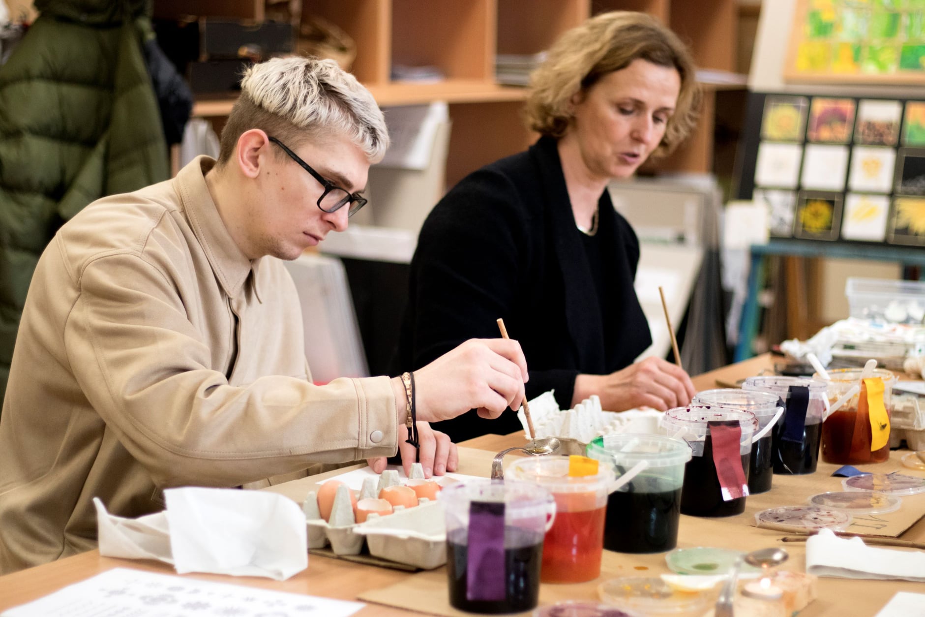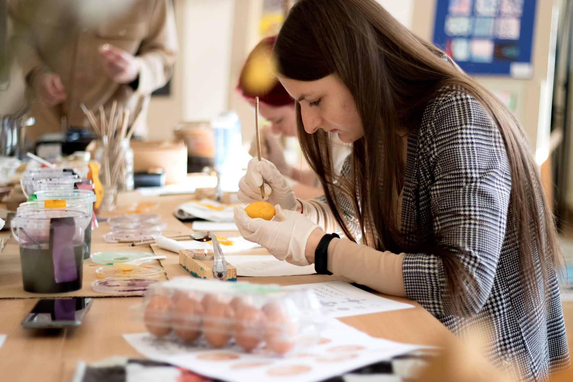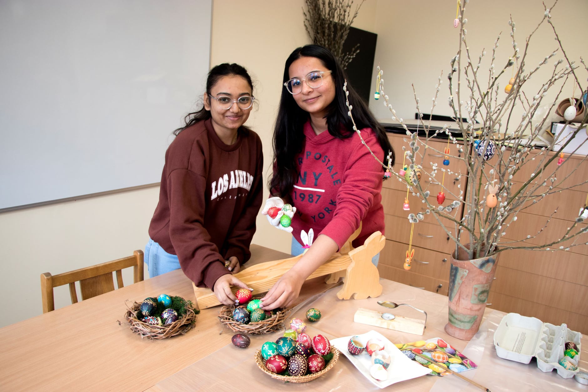 Kiaušinis jau nuo seno yra vaisingumo ir gyvenimo simbolis, tad jų marginimas Lietuvoje per Velykas turi gilias tradicijas ir nuo seno išmėgintas technikas. Paskaitos metu buvo galima išbandyti marginti kiaušinius net keturiais skirtingais būdais pasitelkiant tiek kūrybiškumą, tiek tradicinį raštą – marginimas vašku, skutinėjimas ir šiuolaikiškesnis – dekupažo technika, marginimas vaškinėmis kreidelėmis. Studentai susipažino ir su autentišku būdu lieti žvakes. Gera dalintis, o ir išmokti naujų būdų, technikų, raštų, susipažinti su kita kultūra per tradicijų prizmę. Ši tarpkultūrinė integracija tapo neįkainojama patirtis visiems dalyvavusiems.
