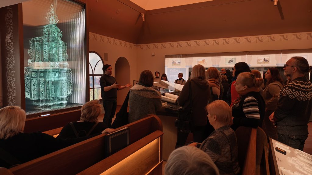 Pilnam autobusui pajudėjus Šeduvos link, prasidėjo ekskursinė programa. Pirmoji stotelė – muziejus „Dingęs štetlas“, kuriame dalyviai susipažino su Lietuvos žydų miestelių (štetlų) istorija, kultūra ir kasdieniu gyvenimu. Šiuolaikiškai įrengta ekspozicija, pasitelkianti architektūrinius sprendimus, garsą ir vaizdą, leido giliau pajusti istorinį kontekstą ir kultūrinės atminties svarbą.
