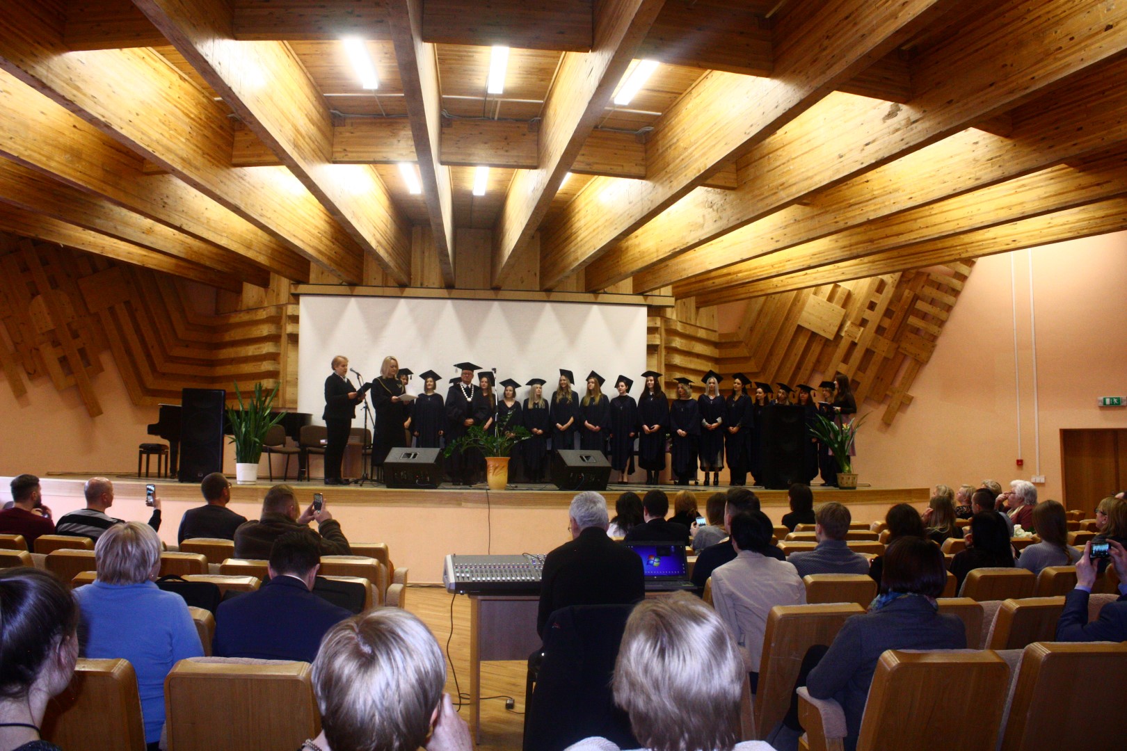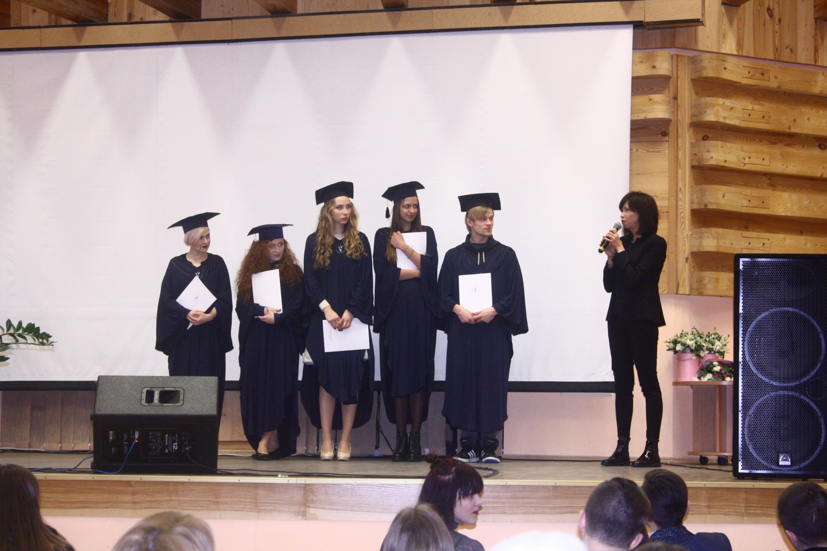 Sveikinimo ir atsisveikinimo žodžius taip pat tarė abiejų katedrų vedėjos Dalia Babilaitė-Abarė ir Gražina Skripkienė. Absolventai negailėjo nuoširdžių padėkos žodžių visiems, prisidėjusiems prie jų 3,5 metų kelionės pirmosios profesinės aukštumos link.