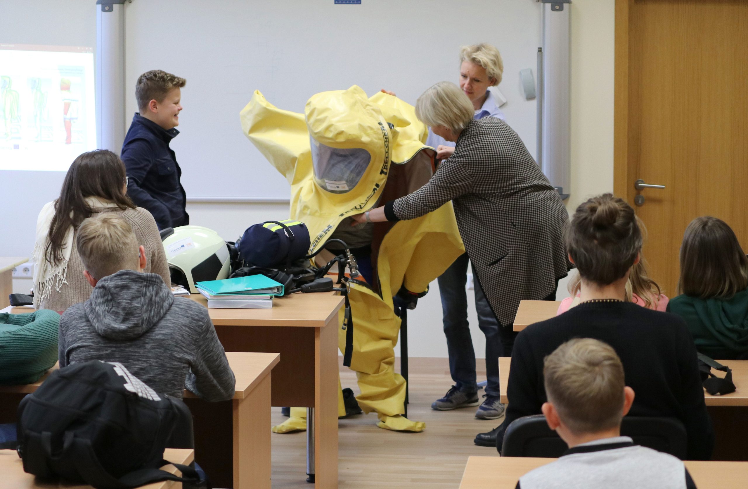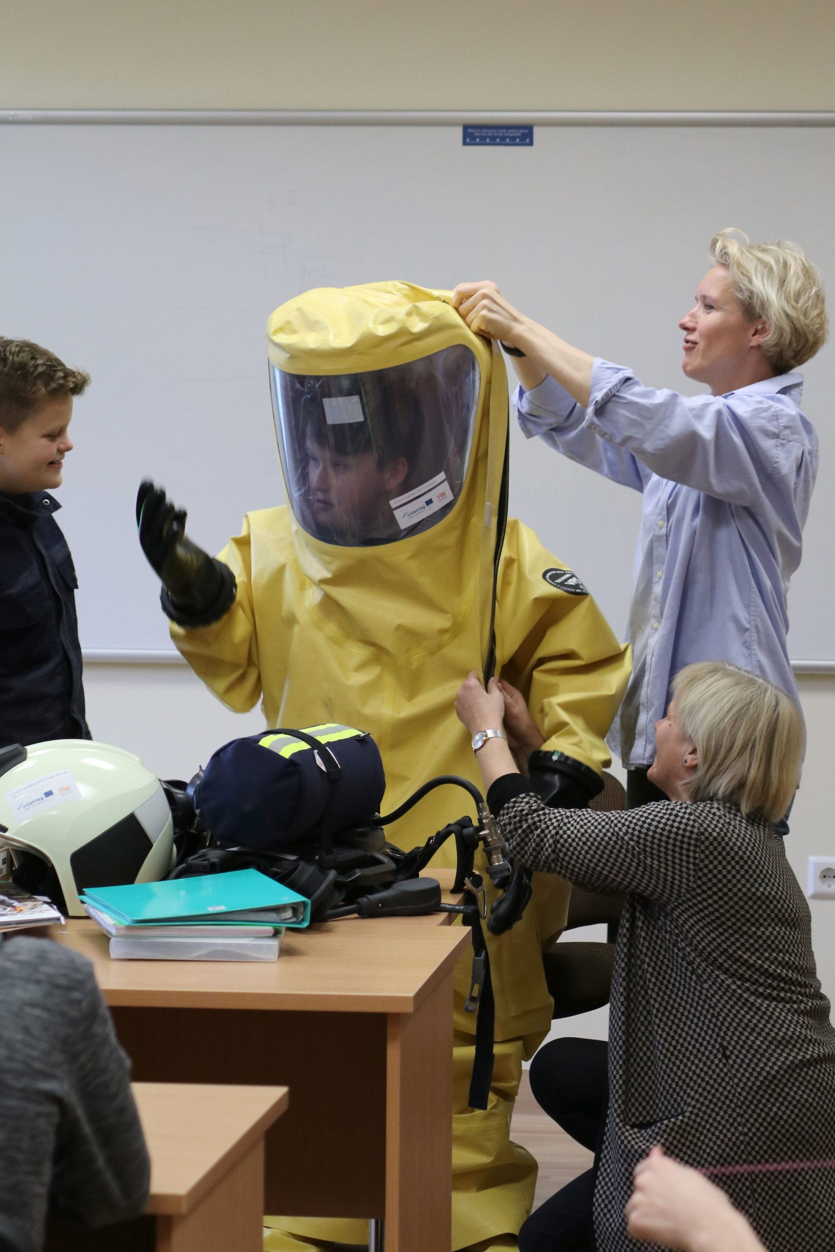 Kalbant apie pavojingų atliekų prevenciją, reikia nepamiršti grėsmių, kylančių cheminių medžiagų perdirbimo, gamybos proceso, laikymo ar transportavimo, toksinių atliekų naikinimo metu. Nelaimių dėl cheminių medžiagų poveikio būna palyginti dažnai ir jas likviduojant reikalingos specifinės priemonės. Mados dizaino katedros prof. dr. Eugenija Strazdienė ir lektorė Violeta Bytautaitė pravedė paskaitą- mokslines dirbtuves „Pavojingų atliekų likvidavimo sauga“. Paskaitos tema siejasi su vykdomu 2014-2020 metų Europos teritorinio bendradarbiavimo tikslo Interreg Baltic Sea Region programos projektu “Išmani ir saugi darbo apranga”. Mokslinių dirbtuvių dalyviai susipažino su priešgaisrinės tarnybos gelbėtojų apranga, apsaugančia nuo stipraus cheminio užteršimo. Buvo diskutuojama apie pavojingo gyvybei ugniagesių gelbėtojų darbo ypatumus, apie itin aukštus reikalavimus, keliamus saugiai darbo aprangai. Tuo pačiu buvo praktiškai pademonstruoti išmanūs 3D individualizuotos aprangos projektavimo ypatumai, aptarti sudėtingi ir brangūs apsauginės aprangos gamybos procesai.