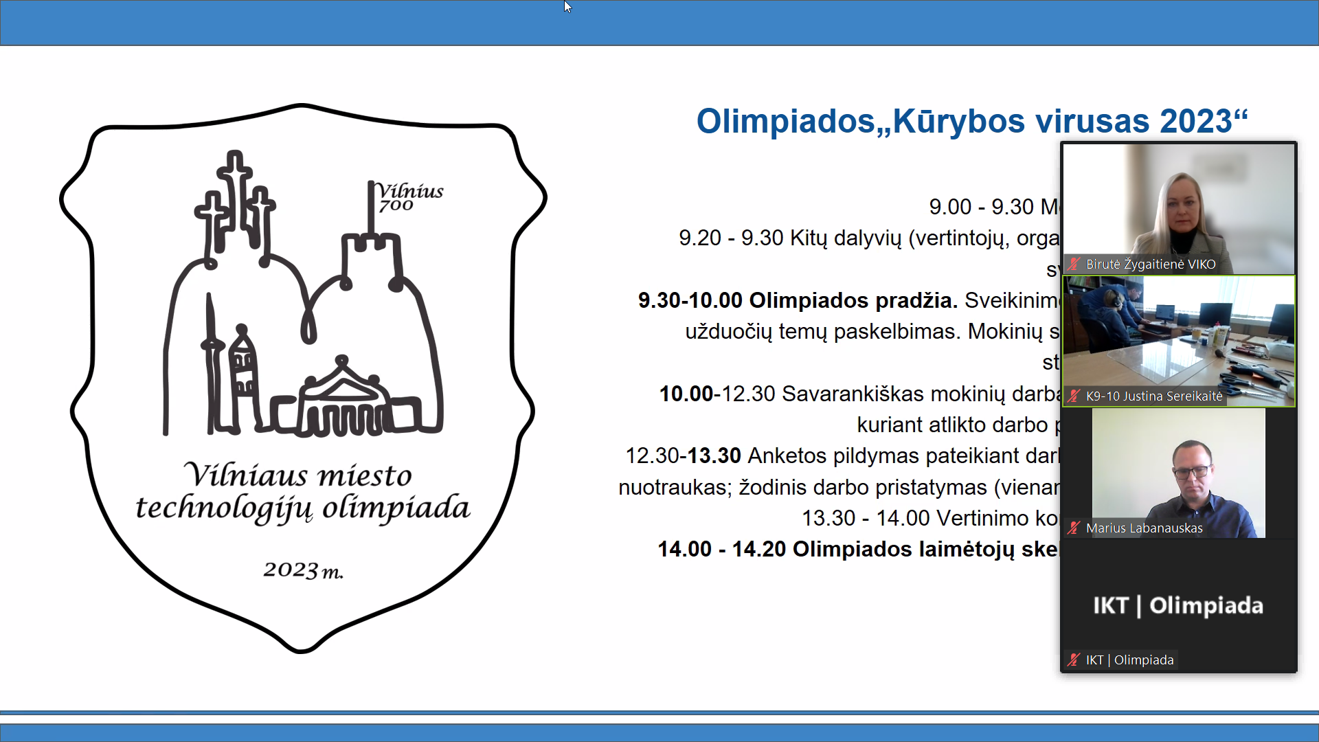 Kovo 22 d. Lietuvos mokinių technologijų olimpiados Vilniaus miesto etapo vertinimo komisijos pirmininkė Vilniaus kolegijos Menų ir kūrybinių technologijų fakulteto dekanė dr. Birutė Žygaitienė pasveikino olimpiadoje dalyvaujančius 7-8, 9-10 ir 11-12 klasių mokinius, technologijų mokytojus, organizatorius ir kartu su kolegomis vertino 58 olimpiados dalyvių kūrybinį procesą, darbų pristatymus bei galutinį rezultatą. Vilniaus miesto technologijų olimpiados darbai jau įvertinti ir kūrybiškiausi mokiniai deleguojami į respublikinę olimpiadą.