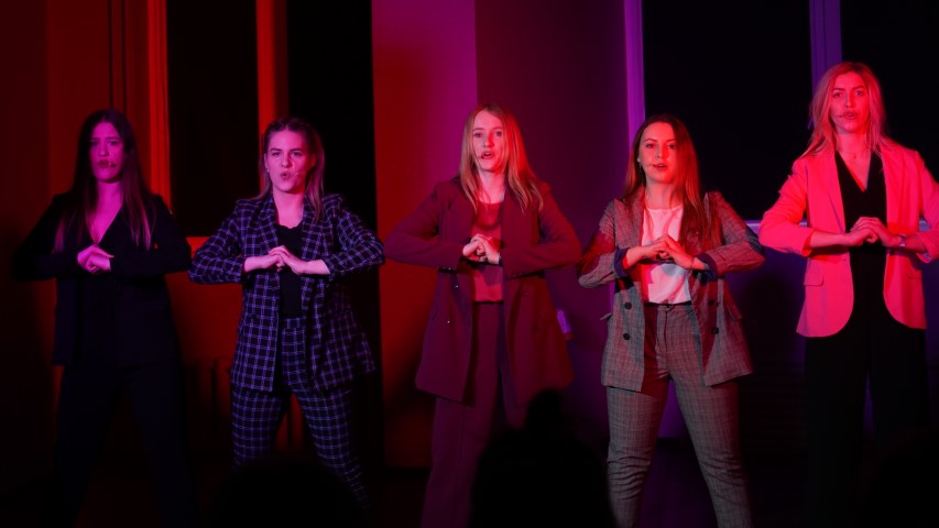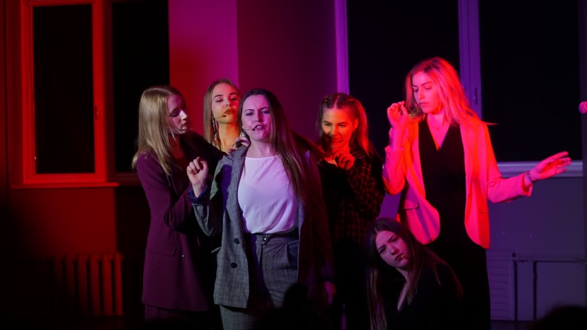 Scenos meno katedros Muzikinio teatro studijų programos antro kurso studentai atliko miuziklinius kūrinius Tarptautinės moterų solidarumo dienos proga. Įspūdingai pradėję ir baigę renginį, studentai pakerėjo publiką savo balsais, choreografija ir emocijomis. Koncertą papildė Vilniaus paslaugų verslo profesinio rengimo centro moksleivių madų kolekcija “Totemas”. Renginio metu svečiai neformaliai bendravo jaukioje šventinėje erdvėje. Šis koncertas buvo suorganizuotas studentų iniciatyva.