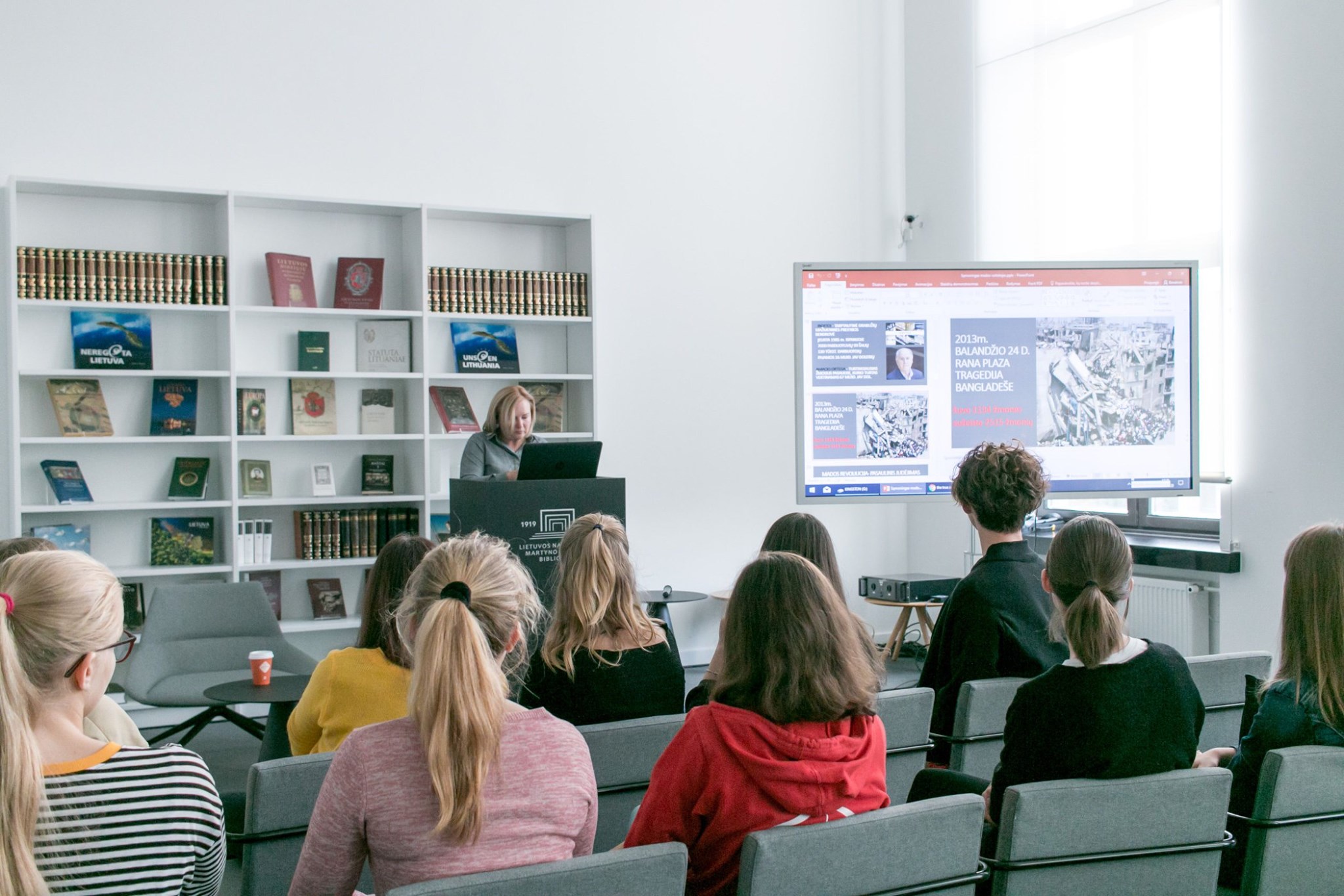 Rugsėjo 20 d. Nacionalinėje Martyno Mažvydo bibliotekoje Mados dizaino katedros vedėja, lektorė Silvija Grušnienė vedė paskaitą “Įvaizdžio matematika”. Paskaitoje lektorė pristatė įvaizdžio komponentus, dalino profesionalius patarimus kaip greičiausiai pakeisti įvaizdį ar susikurti šukuoseną. Buvo galimybė dalyviams pabandyti tai atlikti patiems.