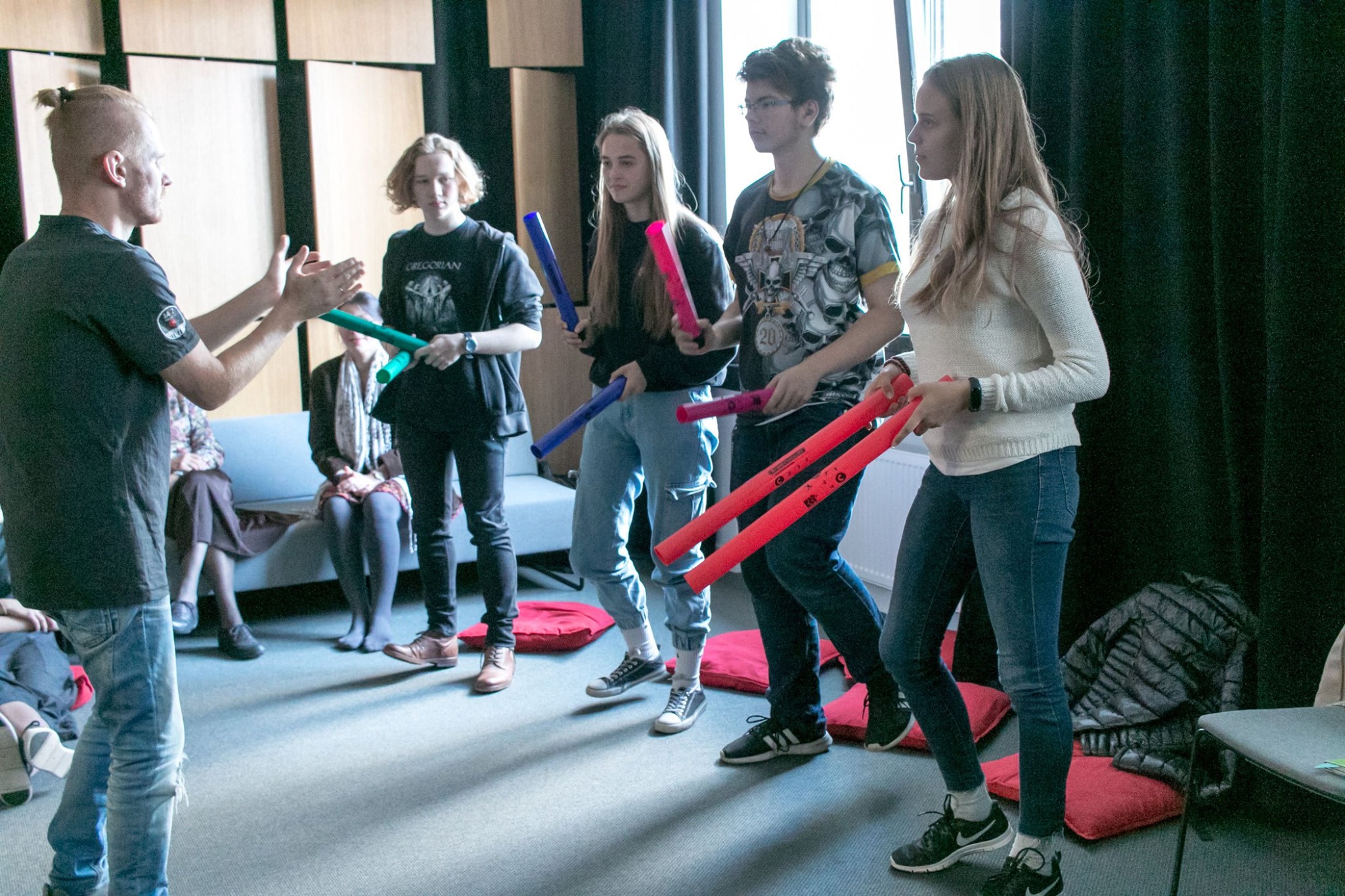 Scenos meno katedros lektorius Andrejus Polevikovas vedė kūrybines dirbtuves ,,Ritmo eksperimentai“. Tai linksmas būdas pažinti ritmą siejant ritmo pratimus su kūno koordinacija. Per žaidimus bei pratimus visi dalyviai susipažino su įvairiais ritmais bei išmoko atlikti nesudėtingas ritmines figūras ir koordinacinius pratimus rankomis, kojomis, įvairių kasdienių daiktų pagalba.