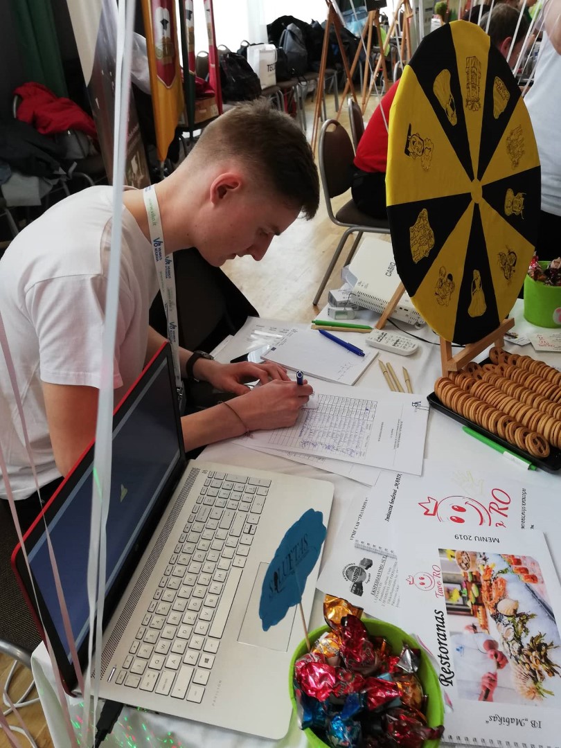 Egidijus: „Mugėje vykusios prekybos su užsienio šalių imitacinėmis bendrovėmis dėka, buvo galimybė užmegzti tarptautinius kontaktus ir pasiūlyti partnerystę. Tai puiki patirtis ir žinios, kaip bendraujama multikultūrinėje erdvėje, kokie iššūkiai laukia norint patekti į užsienio rinką. Tačiau po tokios praktikos norisi dar daugiau dirbti ties verslo idėjomis“.
