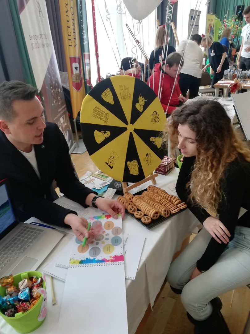 Kamilė: „Dalyvavimas renginyje labai padės tolimesniame gyvenime, nes pasirinkus kultūrinės veiklos sferą, reikia daug kūrybiškumo, kuris atsiskleidė mugėje“.
