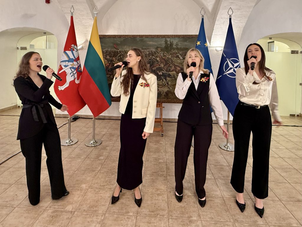 Muzikinio teatro studijų programos studentės – Evelina Dubauskaitė, Gerda Tamulytė, Emilija Paulauskaitė ir Rugilė Lieliungaitė – kartu su Scenos meno katedros dėstytojomis Nijole Baranauskaite-Matukoniene ir docente Dalia Babilaite-Abare dovanojo jautrius kūrinius Lietuvos Respublikos Krašto apsaugos ministerijos bendruomenei bei tą dieną pagerbtiems šalies gynėjams.