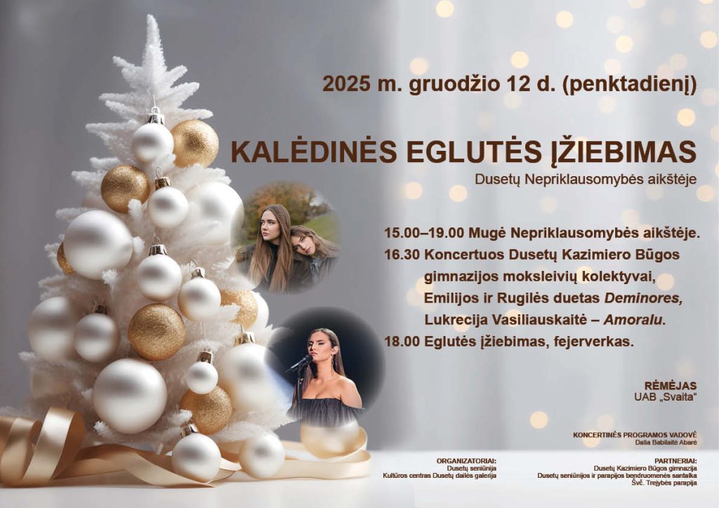 Dusetose vykusioje Kalėdinės eglutės įžiebimo šventėje šventinę nuotaiką kūrė Vilniaus kolegijos Menų ir dizaino fakulteto Muzikinio teatro studijų programos studentės. Vykusi šventė subūrė miesto bendruomenę ir svečius bendram šventiniam susitikimui.