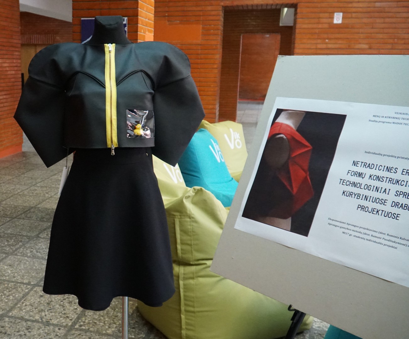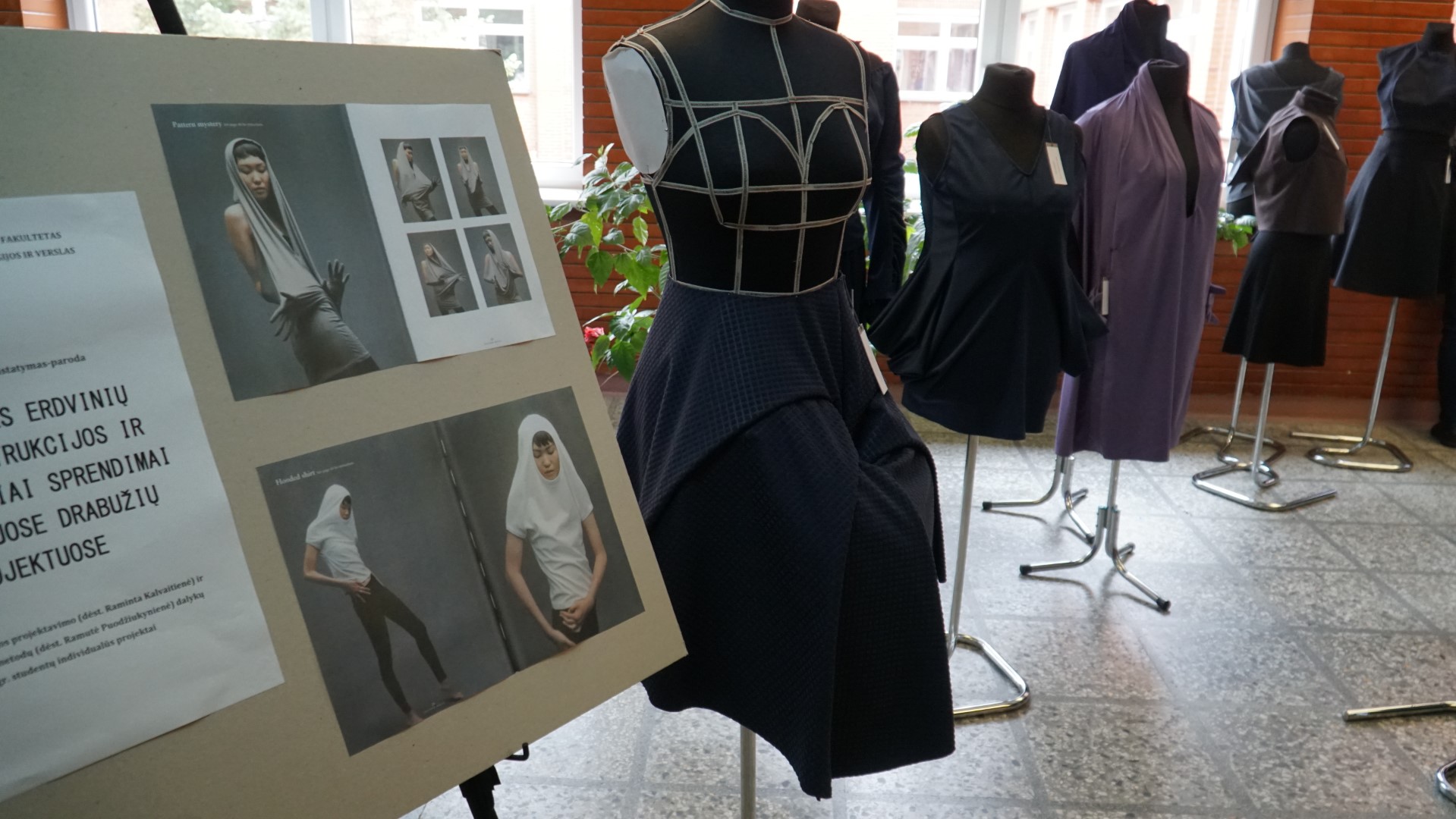 Mados technologijų ir verslo studijų programos MI17 gr. studentės sėkmingai pristatė Aprangos projektavimo (dėst. Raminta Kalvaitienė) ir Aprangos gamybos metodų (dėst. Ramutė Puodžiukynienė) dalykų individualius projektus, kuriuose pritaikė Kauno tarptautinio kapitalo įmonėje vykusiame seminare įgytas žinias apie inovatyvias drabužių gamybos technologijas. Projektų rezultatai – pagal japonų dizainerių idėjas sukurti gaminiai eksponuojami parodoje “Netradicinių erdvinių formų konstrukcijos ir technologiniai sprendimai kūrybiniuose drabužių projektuose“.