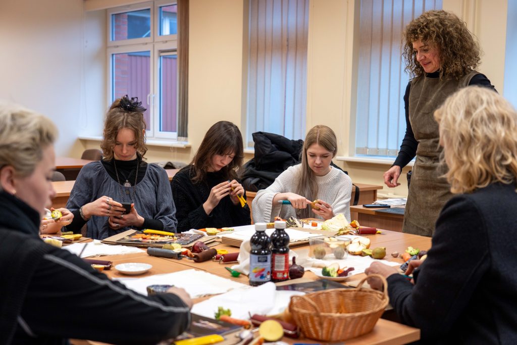 Viešnias šiltai pasitiko Mados dizaino katedros vedėja Gražina Skripkienė, dėstytojai ir studentai, aktyviai įsitraukę į visas vizito veiklas – nuo pristatymų ir diskusijų iki kūrybinio darbo. Dėstymo vizito programa apėmė teorinę ir praktinę dalis: teorinės sesijos metu buvo pristatytos šiuolaikinės tekstilės amatų ir tekstilės meno praktikos Latvijoje, aptartos kūrybinės kryptys ir inovacijos, o praktinėje dalyje studentai dalyvavo kūrybinėse dirbtuvėse, dirbdami su tekstilės spaudos technikomis. Praktinis darbas skatino eksperimentavimą, kūrybinį mąstymą ir teorinių žinių pritaikymą per tiesioginę patirtį.