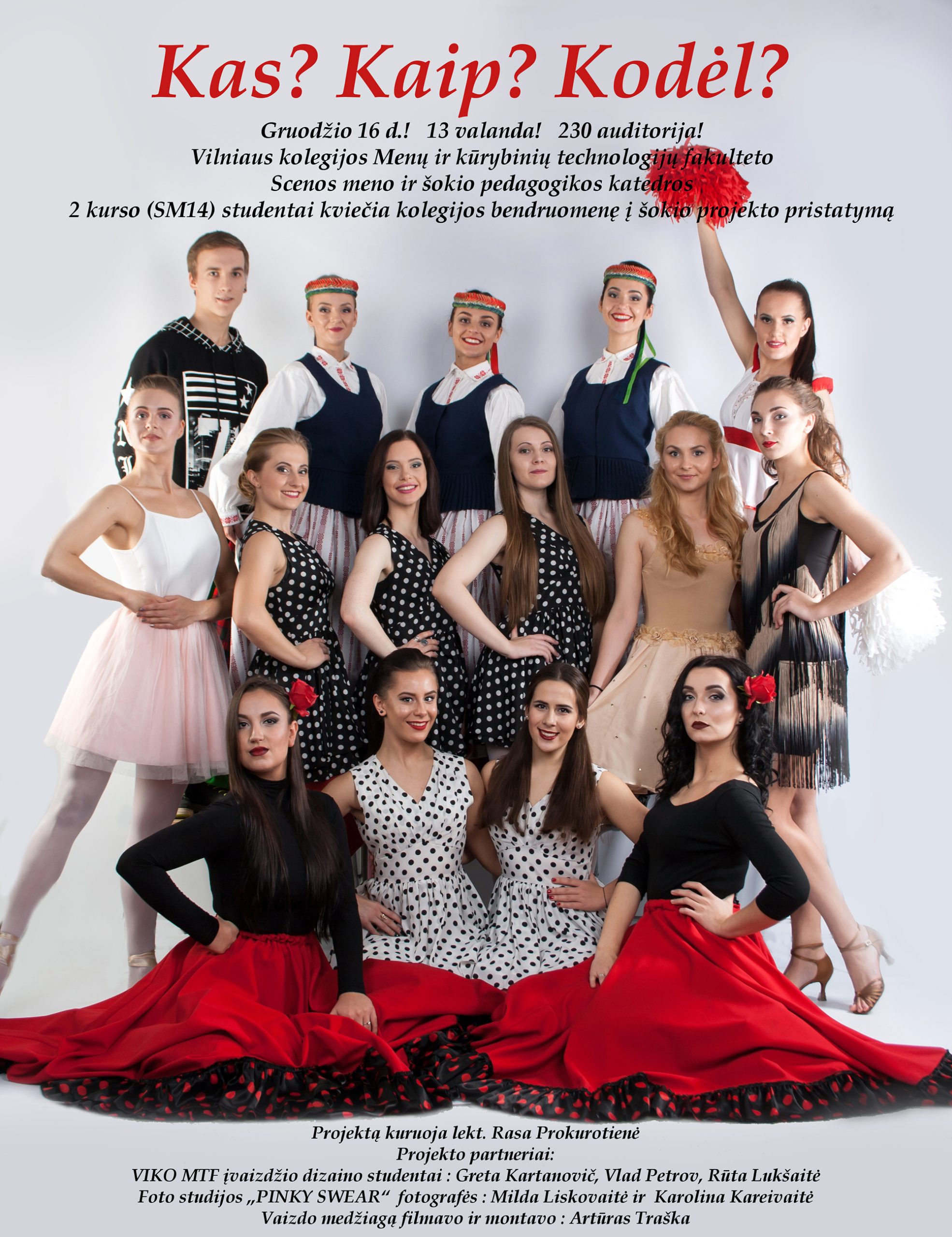 Šokio projekto pristatymas vyks gruodžio 16 dieną 13.00 val. 230 aud. Menų ir kūrybinių technologijų fakultete.