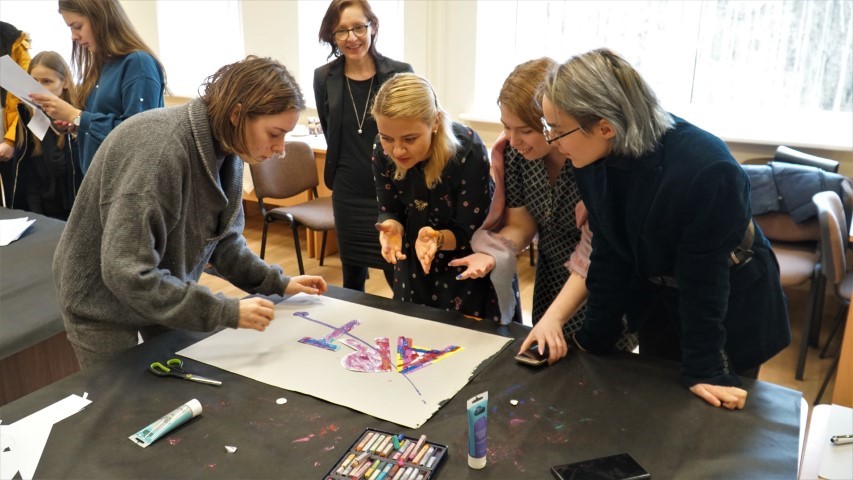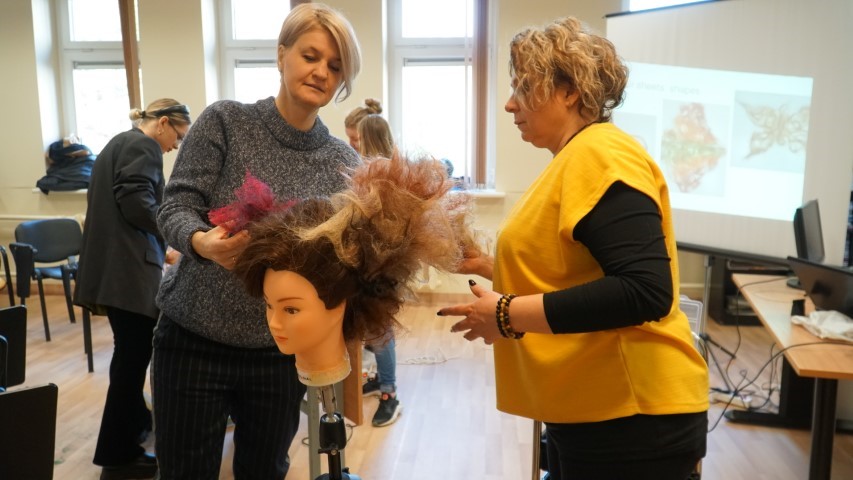 Mados dizaino katedroje viešėjo 4 dėstytojos iš Lenkijos ir Čekijos. Dėstytojos Marta Ipczynska-Budziak ir Natalia Mrozkowiak iš Lenkijos MD, IV, MI grupių studentėms pravedė paskaitas apie grafinį dizainą ir tipografiją (Graphic design and Typography class) bei Meno atkūrimą koliažo technika (Re-creation art – creative strategy). Kartu dirbome kūrybinėse dirbtuvėse ir bandėme atrasti raidžių simboliką bei koliažo technikos pagalba perteikėme įvairius portretus. Dėstytojos iš Čekijos Michaela Skalova ir Renata Vyskocilova su SD ir IV grupių studentėmis vykdė kūrybines dirbtuves – Hairstyling, kuriose pristatyta šukuosenų kūrimo technika iš nukirptų plaukų likučių ir Creating wound buvo atkūriamos realios žaizdos makiažo priemonių.