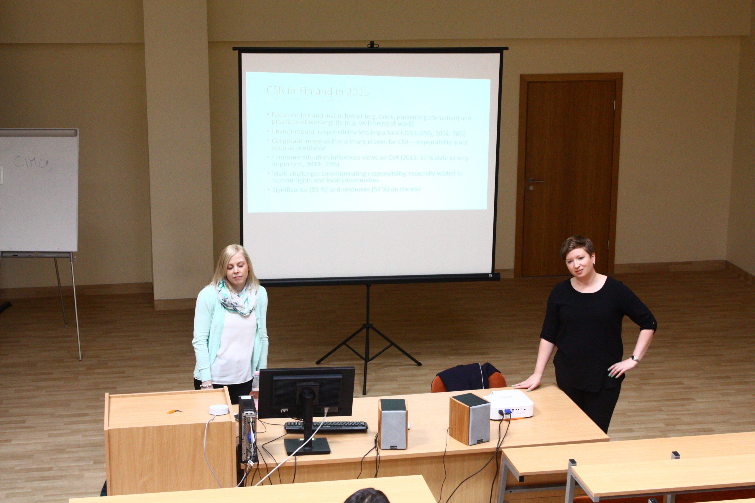 Kultūrinės veiklos vadybos katedros studentams paskaitas skaitė dėstytojos iš Suomijos Anna Heikkinen (School of Management at University of Tampere) ir Elina Riivari (Jyväskylä University School of Business and Economics).