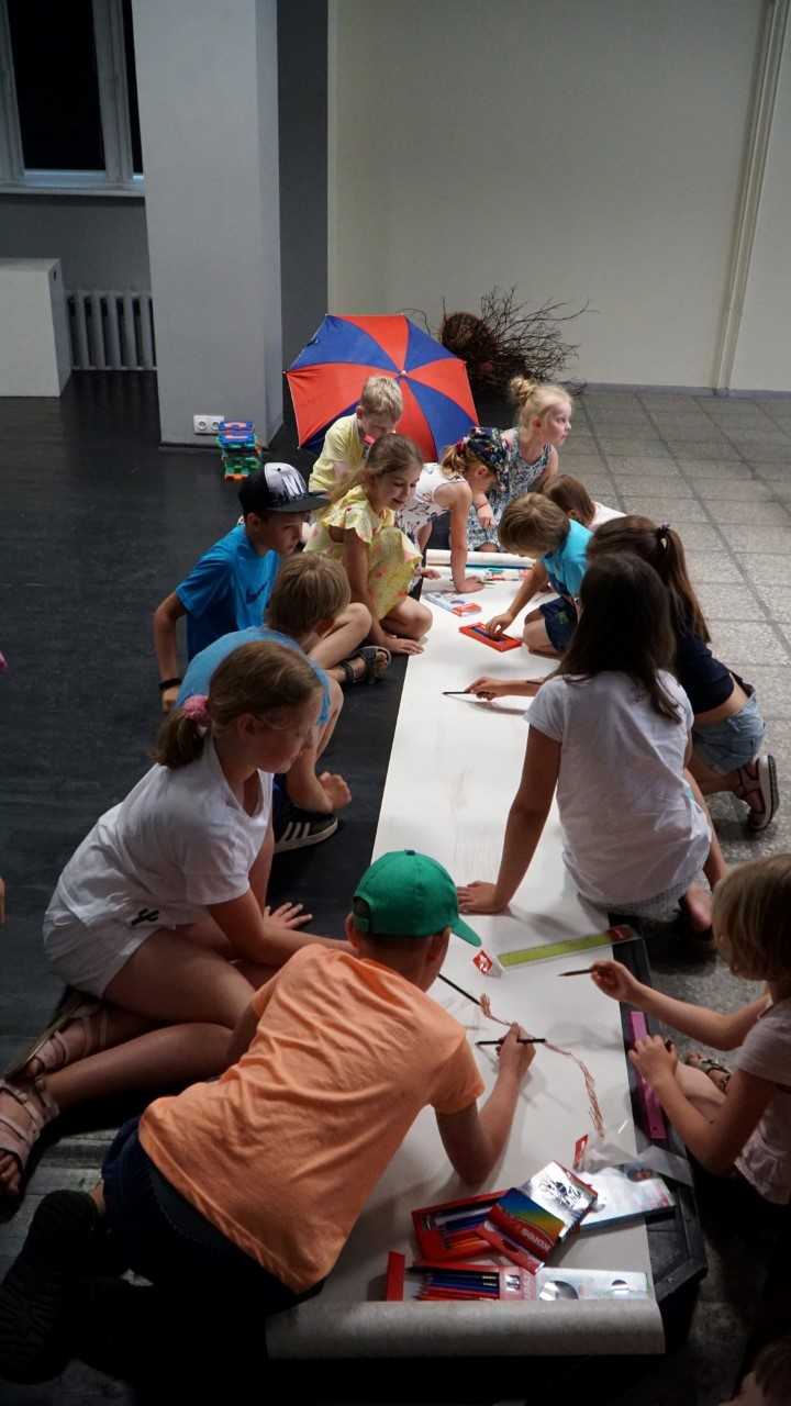 Vilniaus Baltupių progimnazijos 1-4 klasių mokiniai pramogaudami dieninėje mokyklos poilsio stovykloje „Sveika, vasara, Baltupiuose – 2019“ birželio 13 d. atvyko į Menų ir kūrybinių technologijų fakultetą dalyvauti edukacinėse  veiklose. Smagiai nusiteikę, pilni energijos ir neišsigandę vasaros karščių mokiniai dalyvavo kūrybinėse dirbtuvėse: piešė didžiulį piešinį, klausė muzikos garsų, pynė apyrankes, lankstė balionus, susipažino su fakulteto vykdoma veikla bei erdvėmis ir smagiai leido laiką kartu su Muzikinio teatro studijų programos studente Kotryna Chruškova bei edukacinės programos kuratore  Inga Kepaliene.