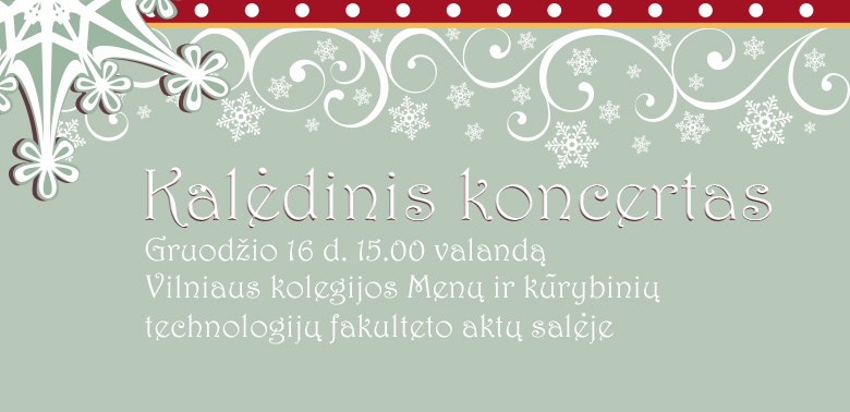 Gruodžio 16 d., trečiadienį, Vilniaus kolegijos Menų ir kūrybinių technologijų fakultete vyks kalėdinis koncertas. Jo metu, Ritminės muzikos katedros studentų ansambliai, vadovaujami lektorių Sauliaus Didžiulio ir Vyčio Nivinsko, atliks ne tik džiazo kompozicijas, bet ir gražiausius kalėdinius kūrinius.