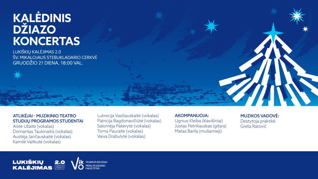 Baigiamasis trečio kurso Muzikinio teatro studijų programos studentų Džiazinio dainavimo Kalėdinis koncertas vyks bendradarbiaujant su renginių organizavimo įmone Aštuntas elementas, UAB, Lukiškių kalėjimas 2.0.