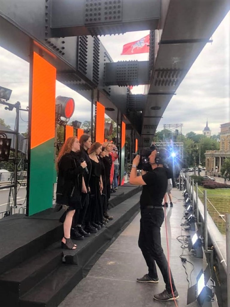 Vilniaus kolegijos studentės Valstybės dieną šventė scenoje ant Mindaugo tilto