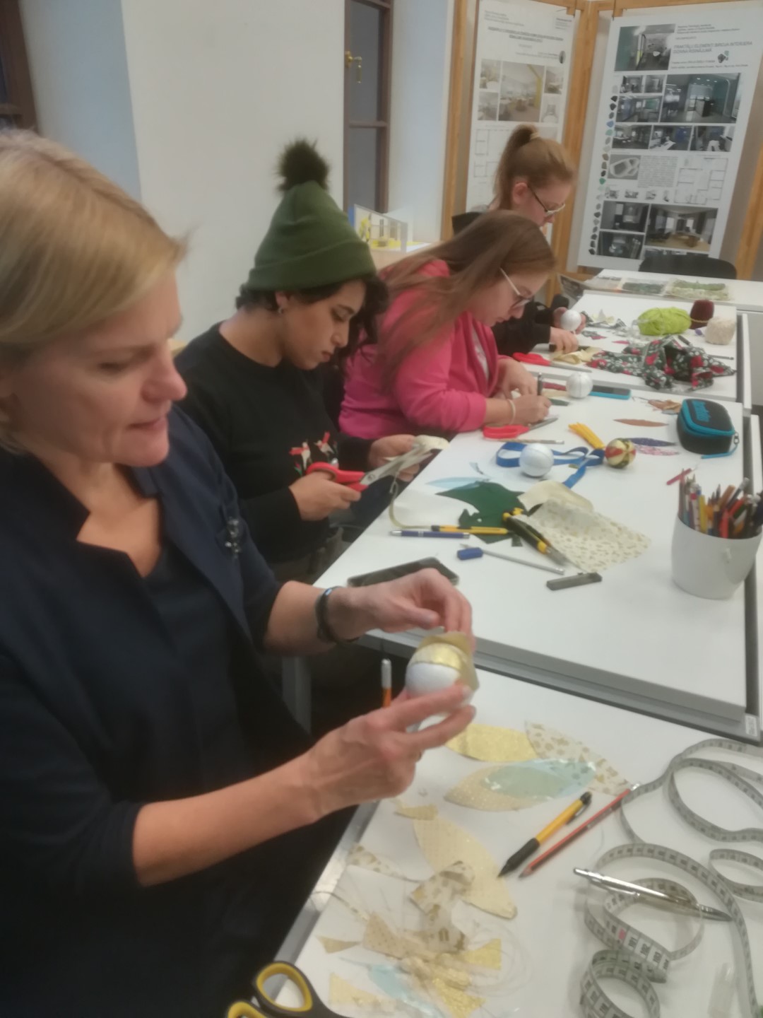 Rezeknės technologijų akademijos interjero ir mados dizaino dėstytojai bei tarptautinė studentų grupė iš Latvijos, Turkijos ir Italijos labai uoliai dirbo kūrybinių dirbtuvių metu, kurias vedė dėstytoja Gražina Skripkienė. Praktinių užsiėmimų metu dėstytoja dalinosi patirtimi, kaip įvairias tekstilės dekoravimo technikas galima pritaikyti tiek drabužių kūrime, tiek interjero detalėse.
