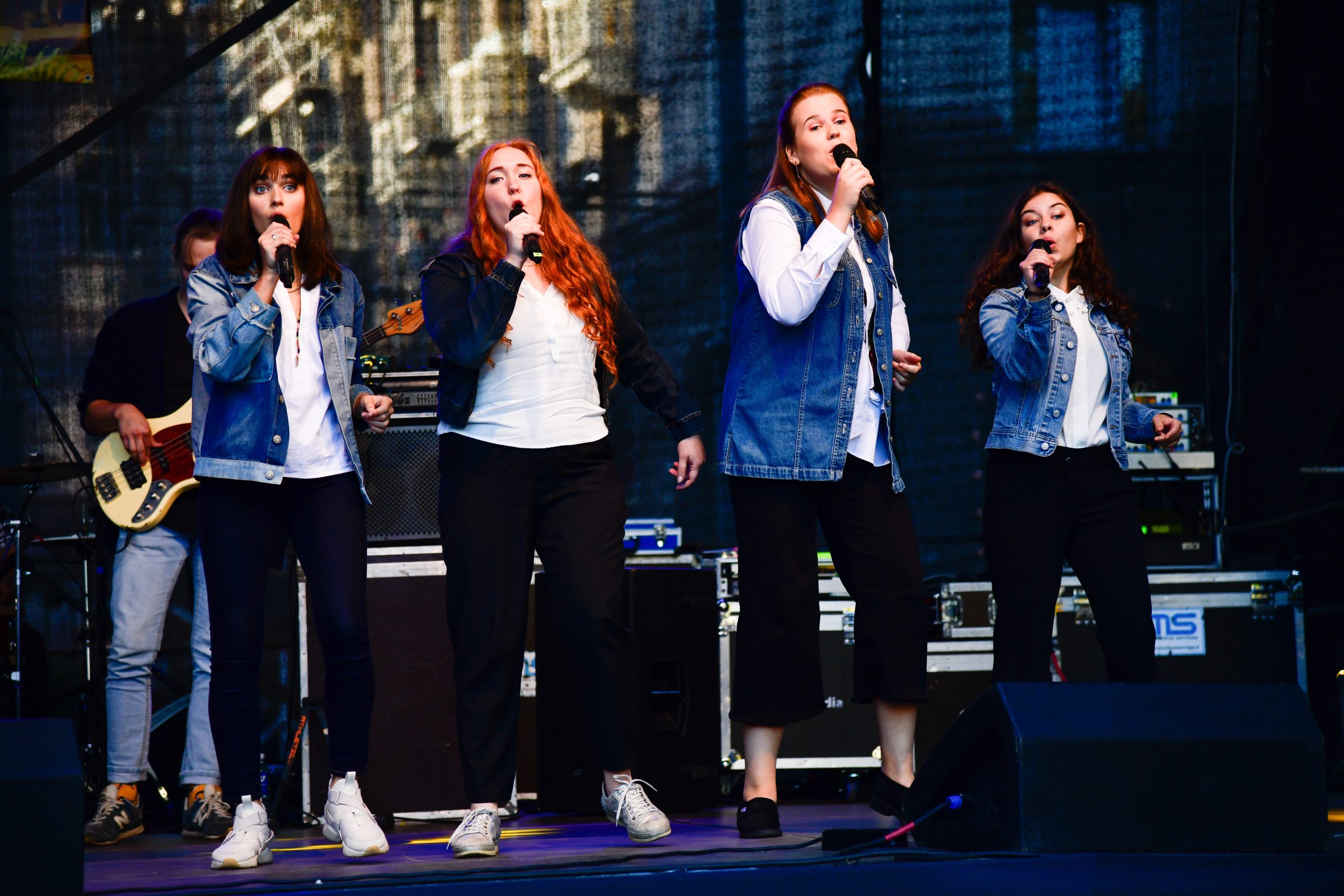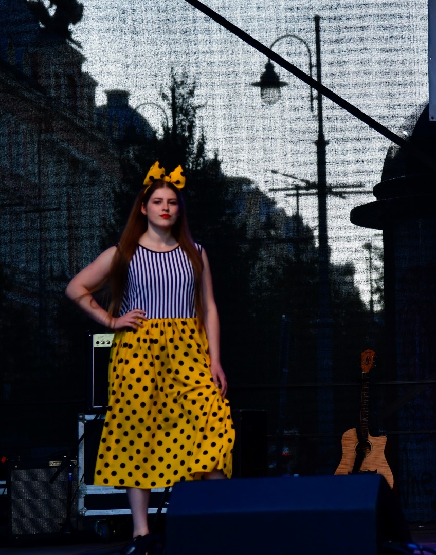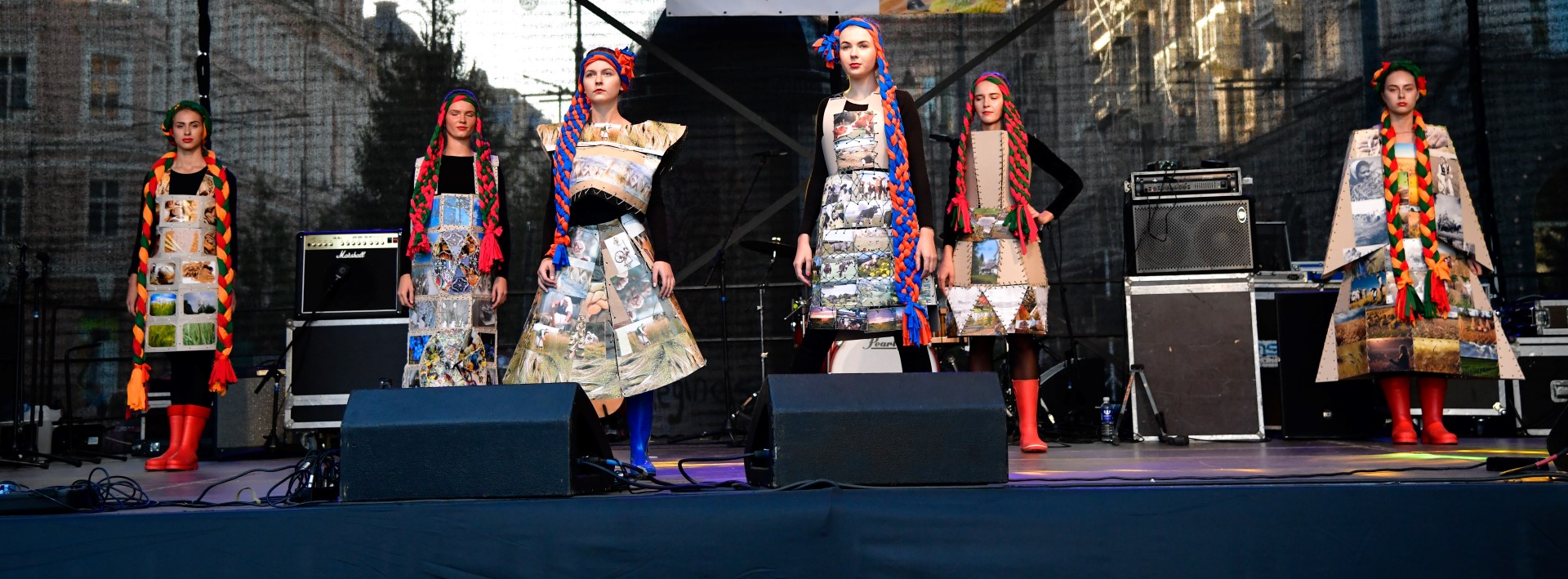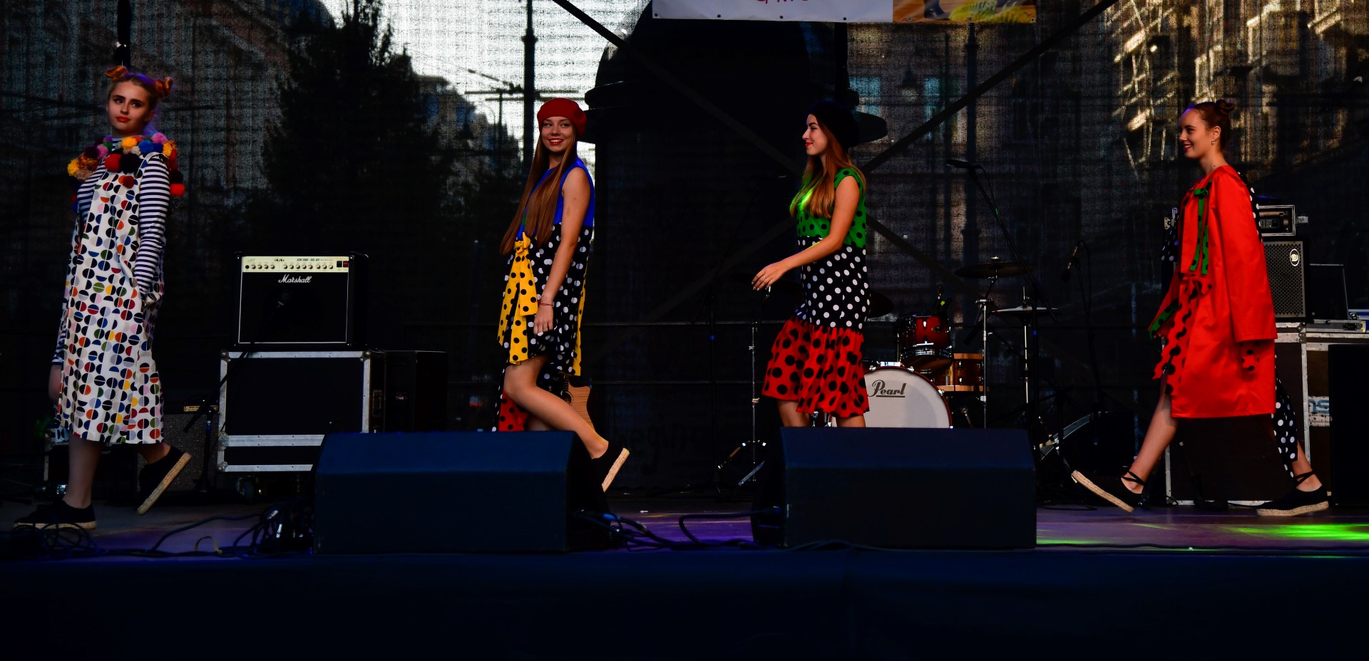 Pasirodymą pradėjo Muzikinio teatro studijų programos studentai. Jie atliko kūrinius iš garsių miuziklų – „Hamilton”, “The Greatest Showman”, “Bring it on“ ir “Rent“ bei savo kūrybos dainas. Po jų pasirodymo žiūrovų akis džiugino autorinė Samantos Samulytės (MD16 gr.) kolekcija “Pajusk laisvę spalvindama kasdienybę” bei konceptualios mados kolekcija „Sadūto tūto“, jas pristatė Mados dizaino ir technologijų, Įvaizdžio ir Šukuosenų dizaino studijų programų studentės. Koncertinę programą užbaigė audringas Populiariosios muzikos studijų programos studentų grupės „Good Time Boys“ pasirodymas. Mugės scenoje skambėjo žymių AC/DC, „Red Hot Chili Peppers“ bei kitų atlikėjų kūrinių interpretacijos.
