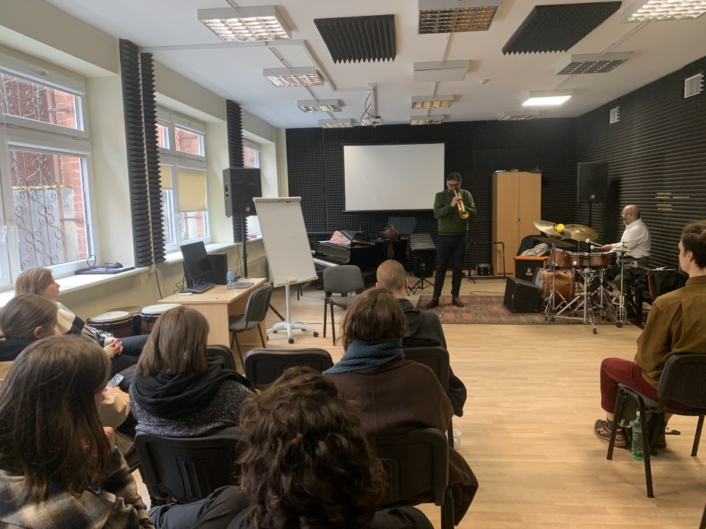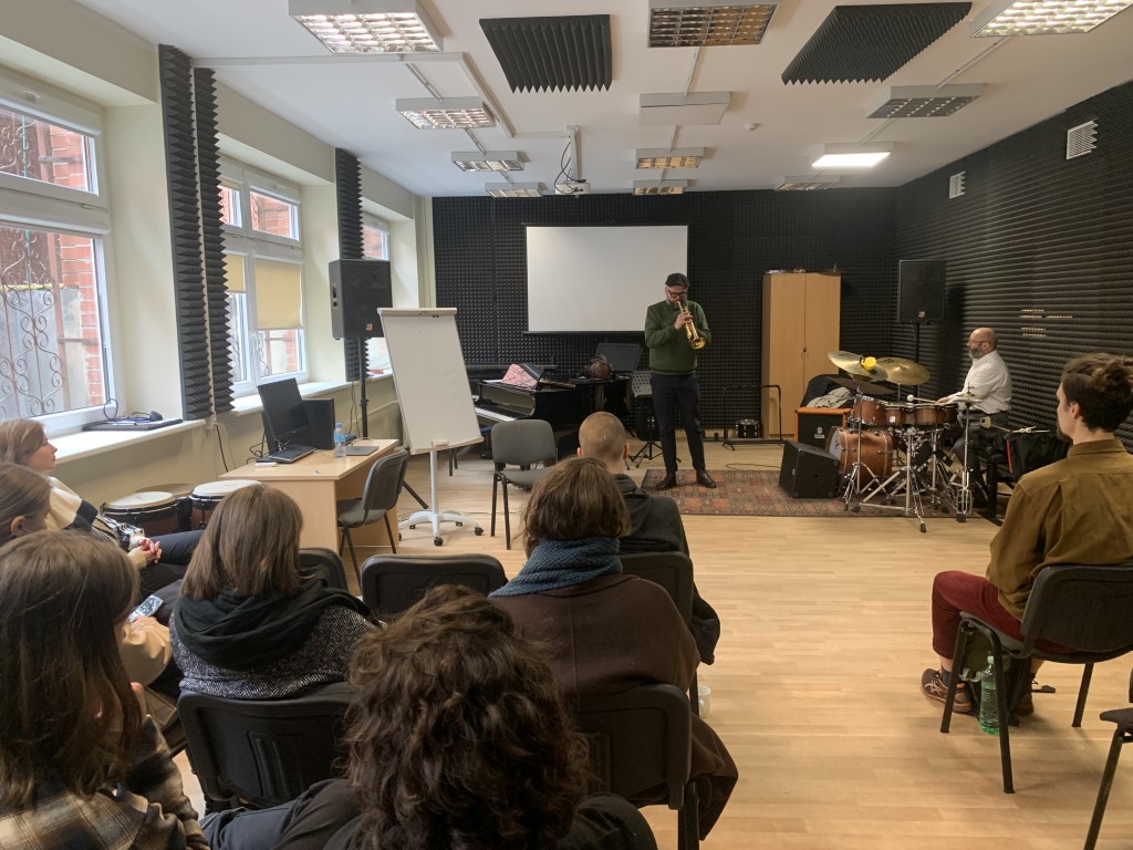 Balandžio 4 dieną savo patirtimi su Populiariosios muzikos studijų programos studentais dalinosi žymus lenkų kilmės trimitininkas ir kompozitorius Tomasz Dąbrowski. Šis muzikas groja trimitu ir balkanų ragu vadinamu instrumentu. Jo stiprus, akimirksniu atpažįstamas skambesys ir išraiškingas grojimas yra įkvėpti laisvojo džiazo, Berlyno avangardo ir Rytų Europos folko. Populiariosios muzikos studijų programos studentams Maestro vedė meistriškumo pamokas, ansamblinio grojimo kūrybines dirbtuves. Kartu su Ritminės muzikos katedros dėstytoju Arkadij Gotesman svečias surengė koncertą, kuriame klausytojai galėjo išgirsti originalias improvizacijas.